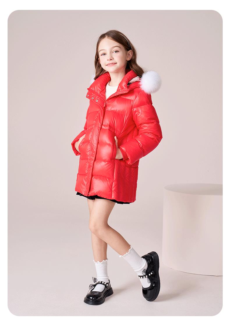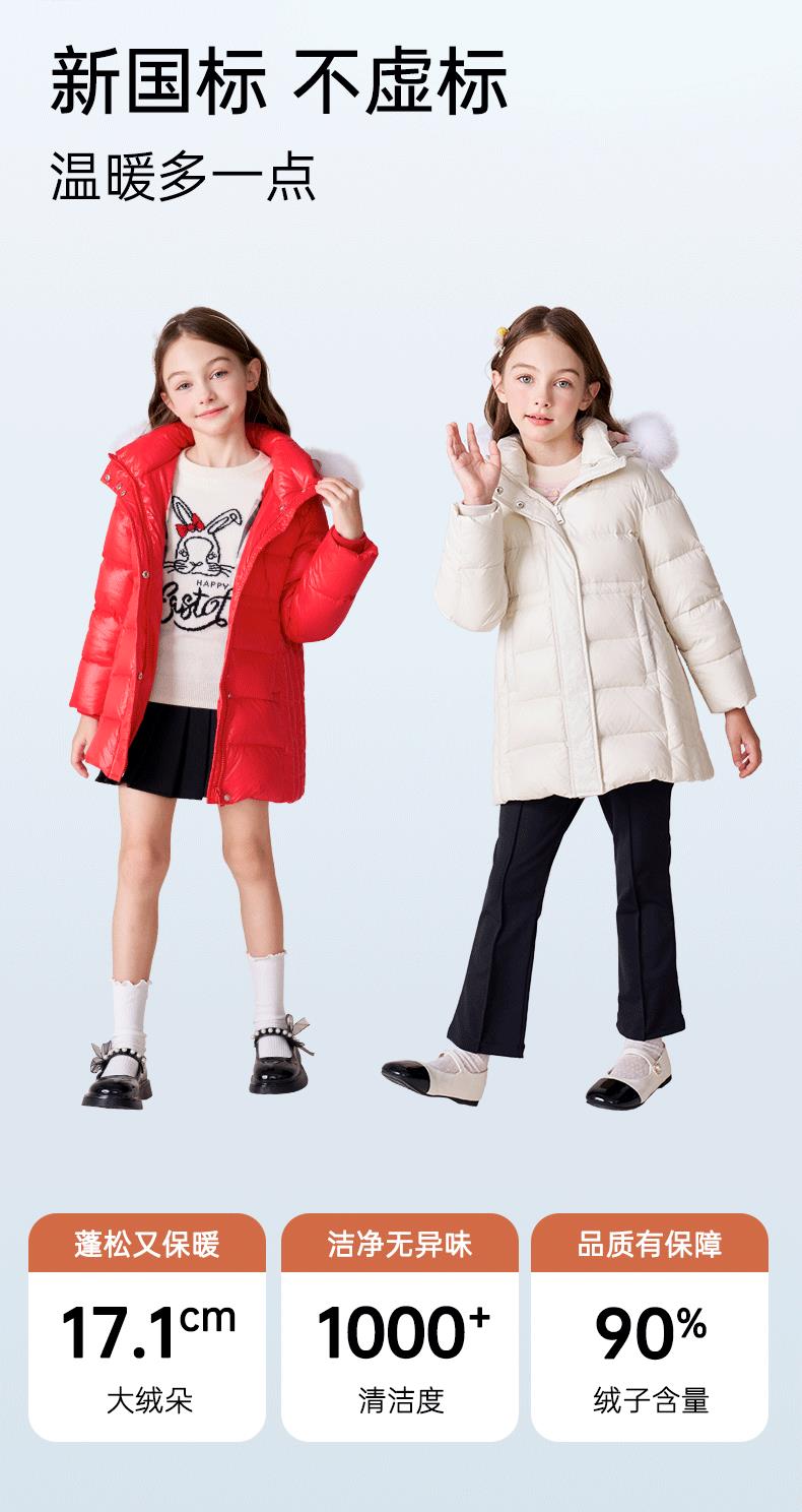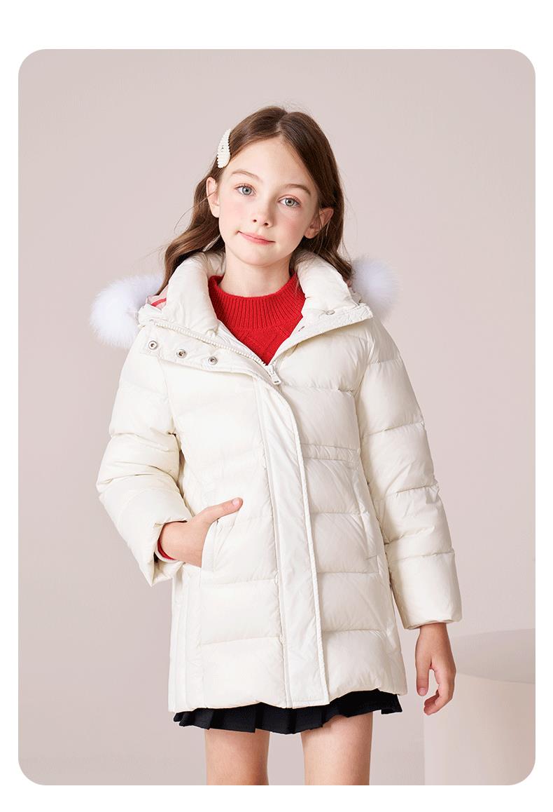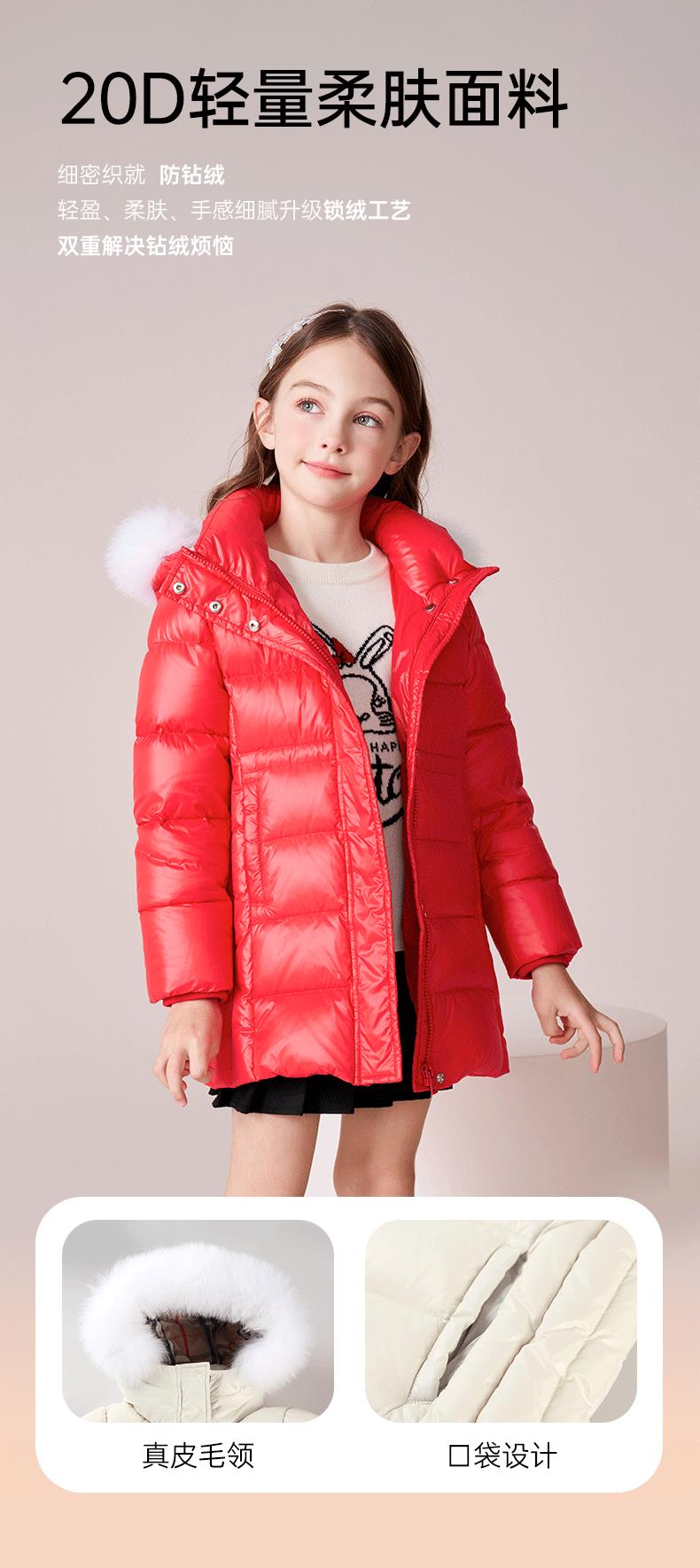 【三防】女童羽绒服2023秋冬新款90鹅绒加厚儿童长款保暖连帽外套