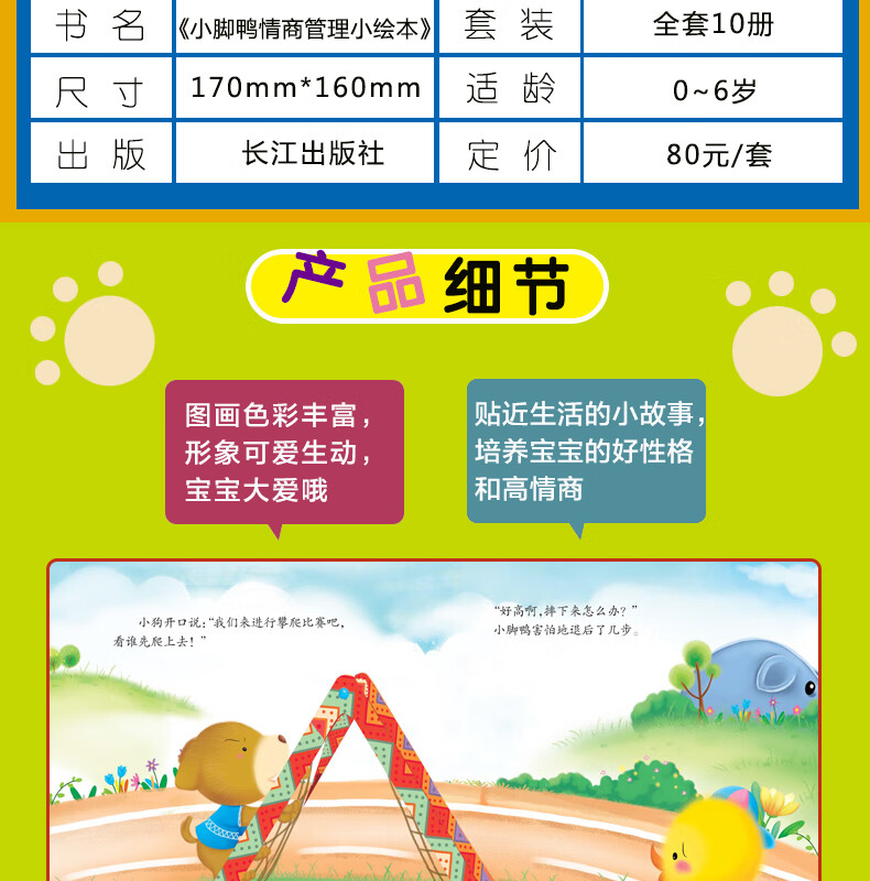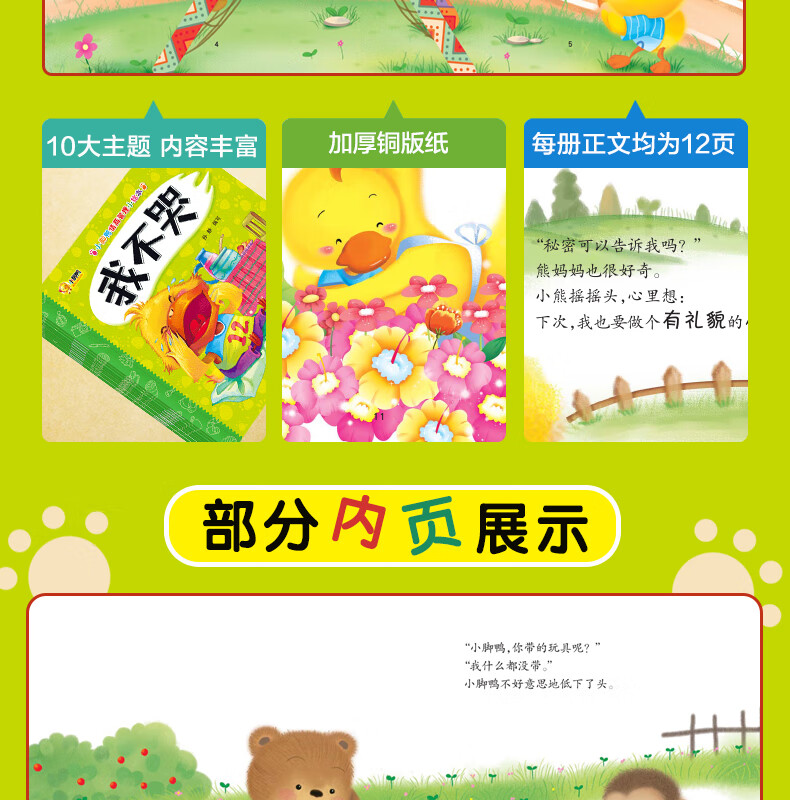 3-6岁:幼儿情商管理小绘本(全10册)培养宝宝高情商,语言启蒙开发智力,图画色彩丰富,形象可爱生动,贴近生活的小故事,培养宝宝的好性格。