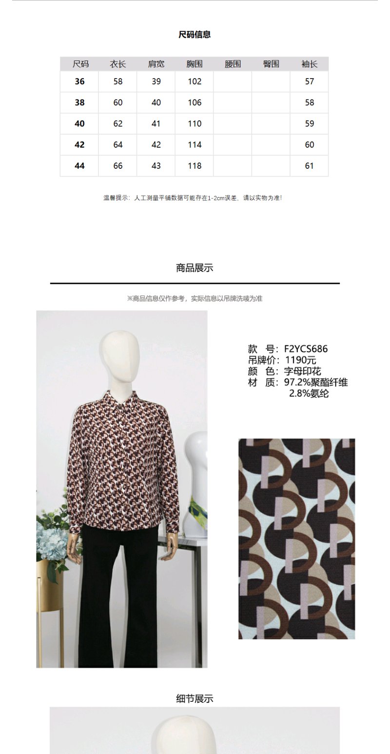 FOCALS福柯斯女装秋季新款休闲长袖字母印花上衣衬衫F2YCS686RK