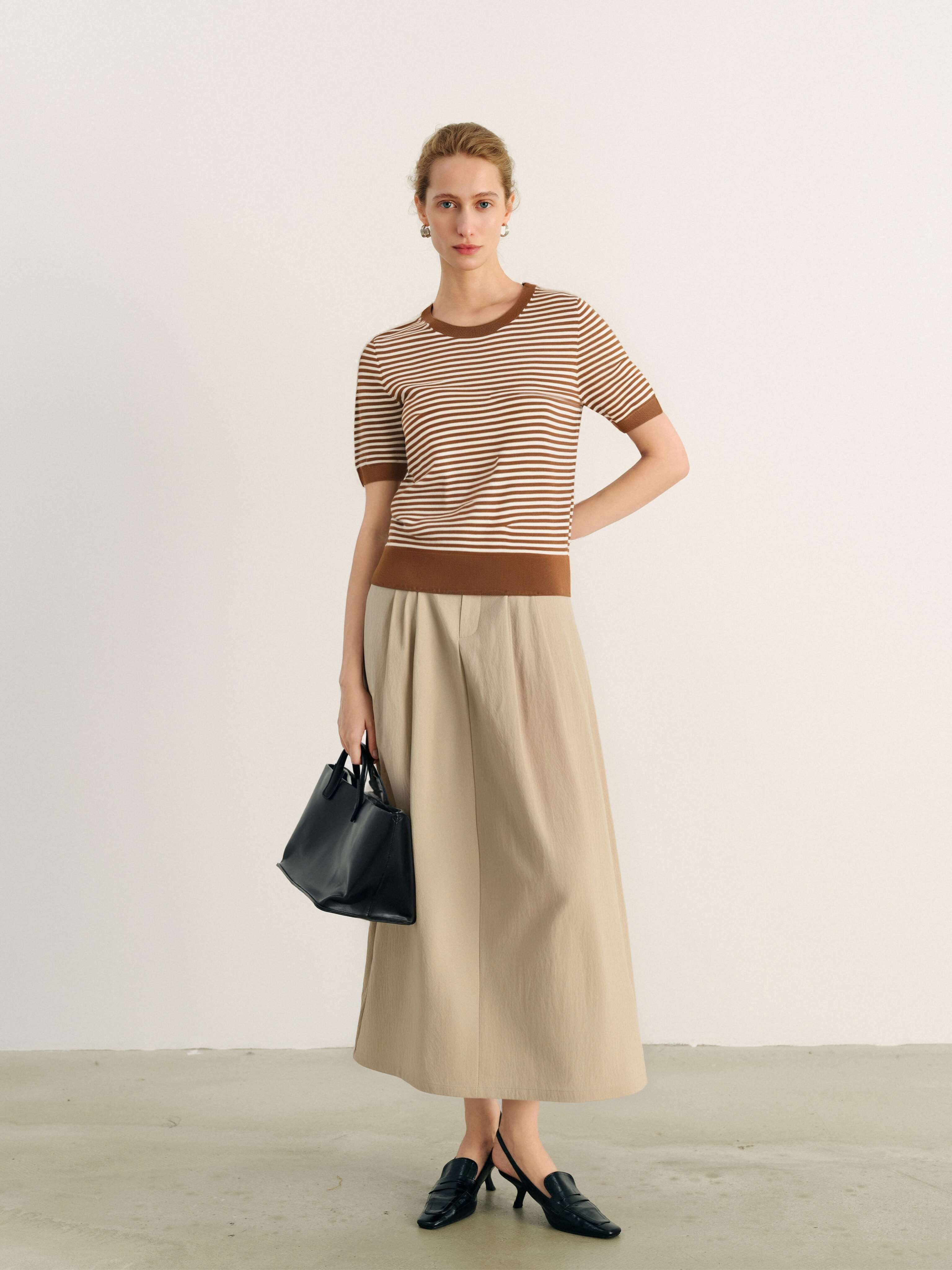 【积分换购不退货】【特惠不退货】伊芙丽圆领条纹T恤针织衫1FA601301