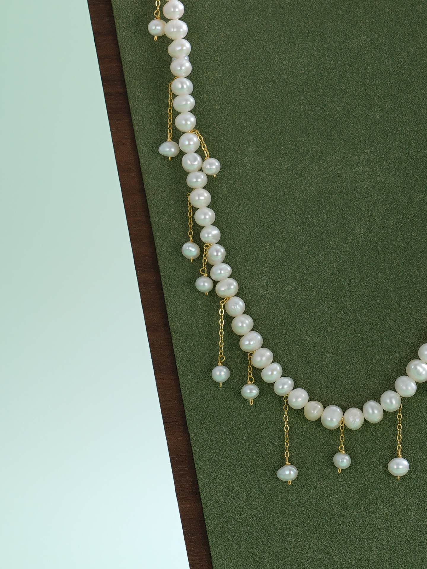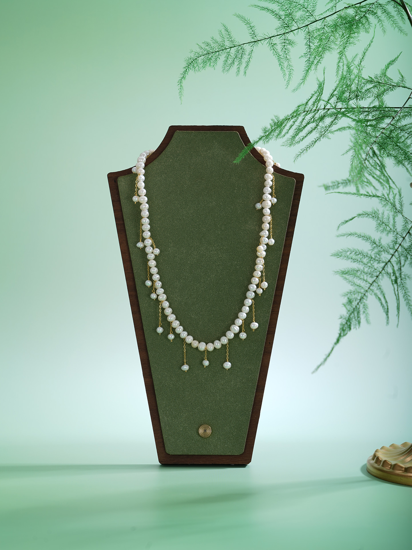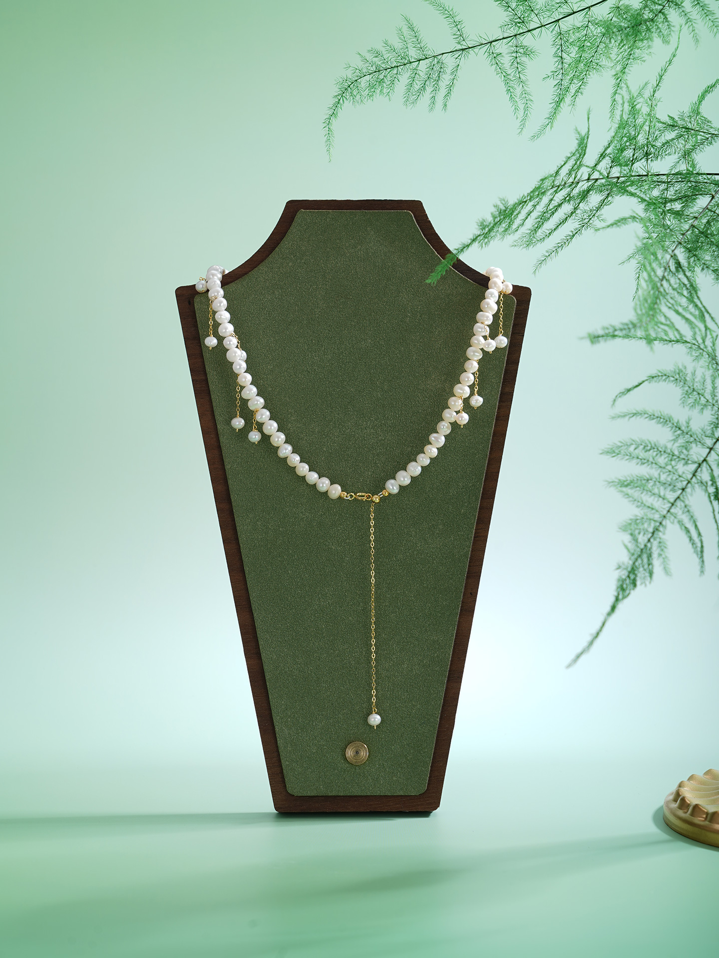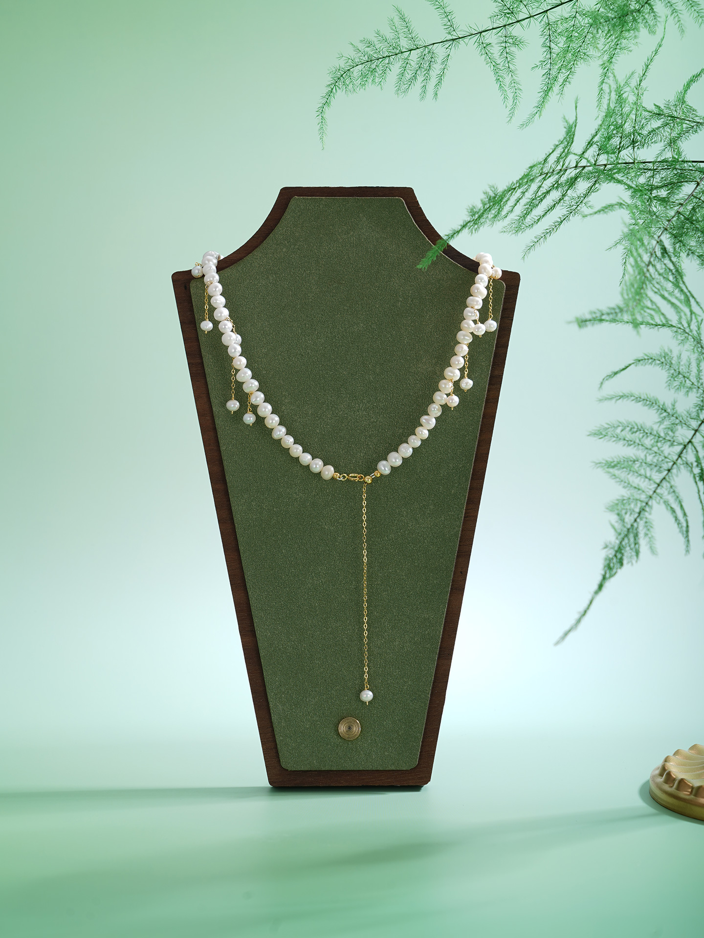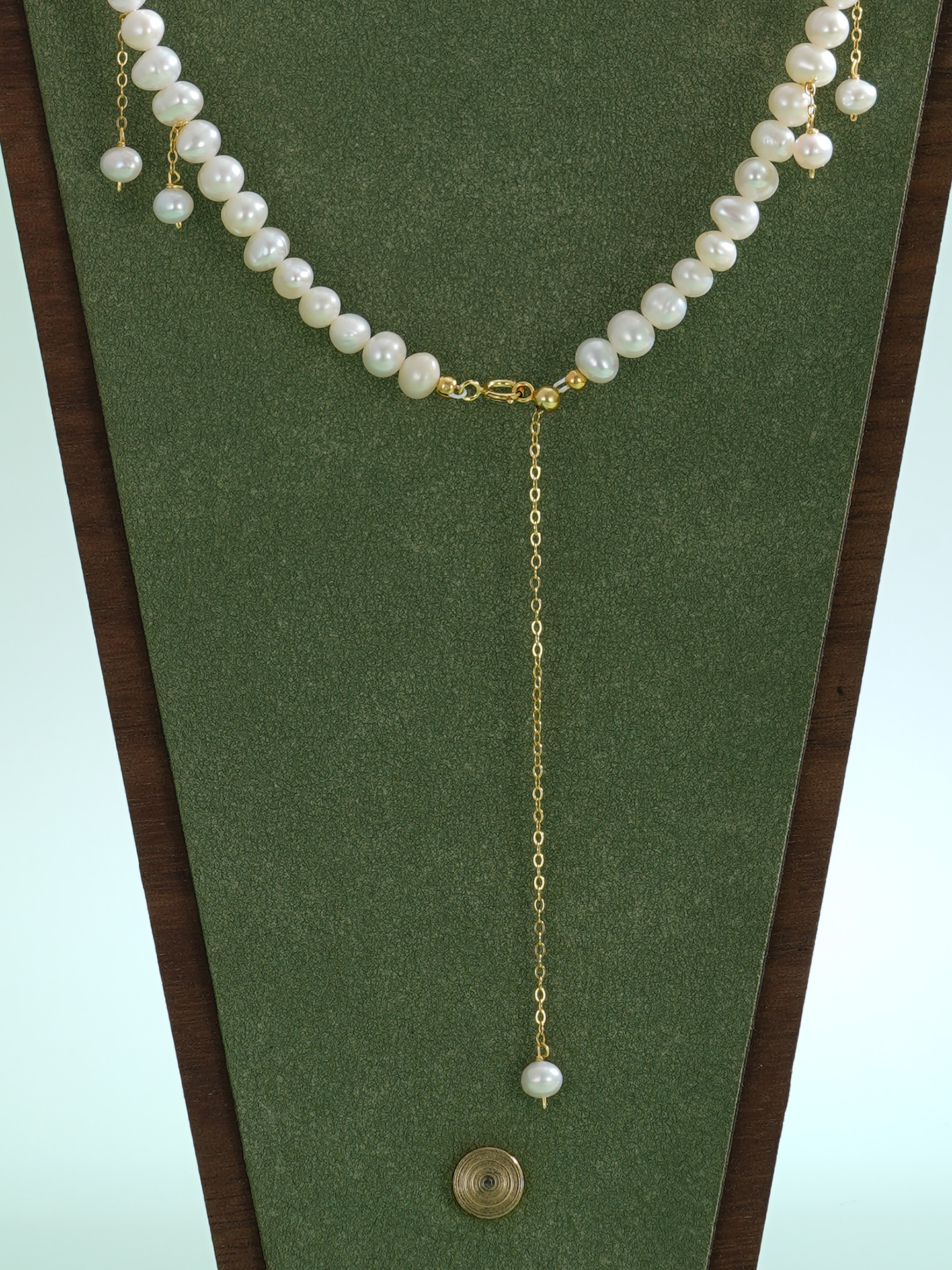 子佩集【珠玑流韵】银S925珍珠项链【SGN1500003】5mm珠镀金流苏2512