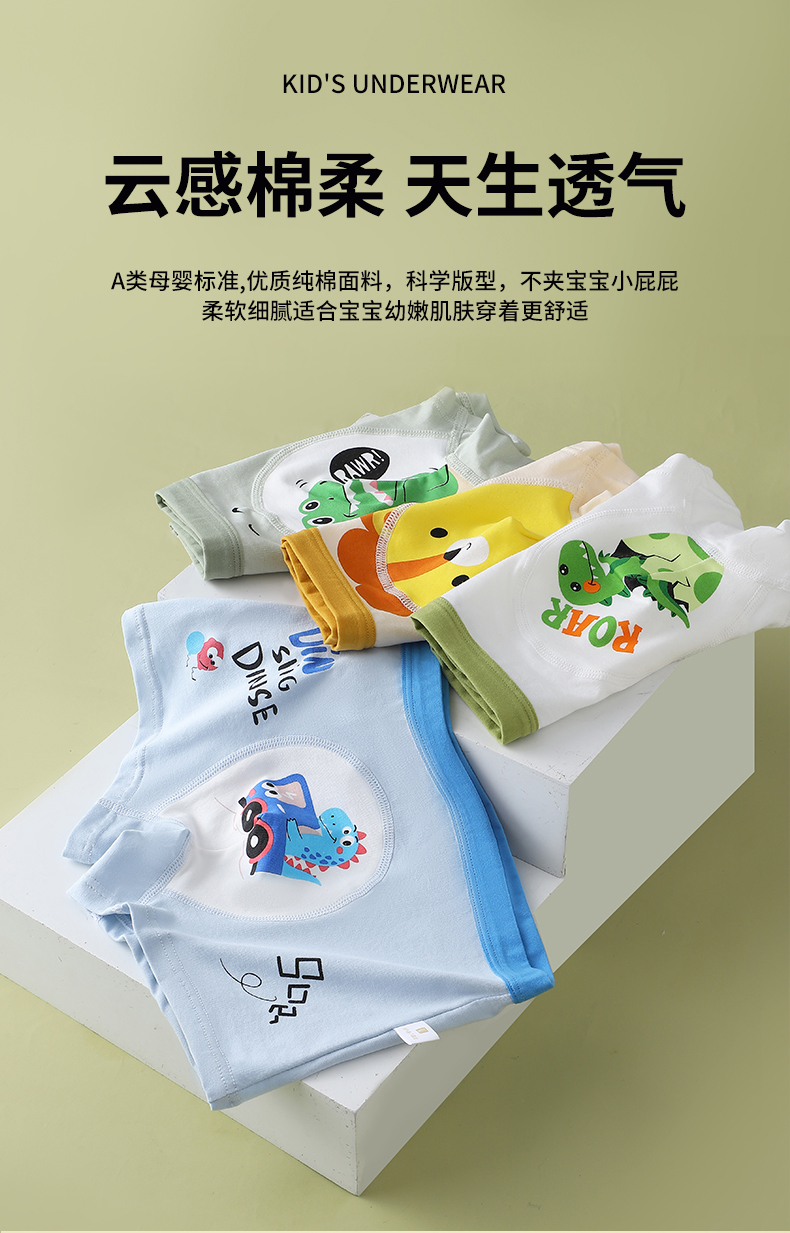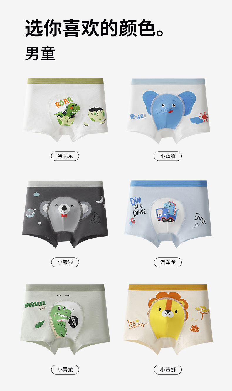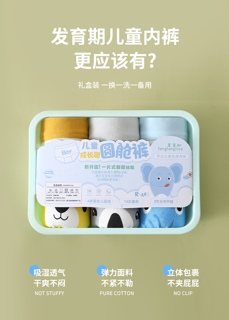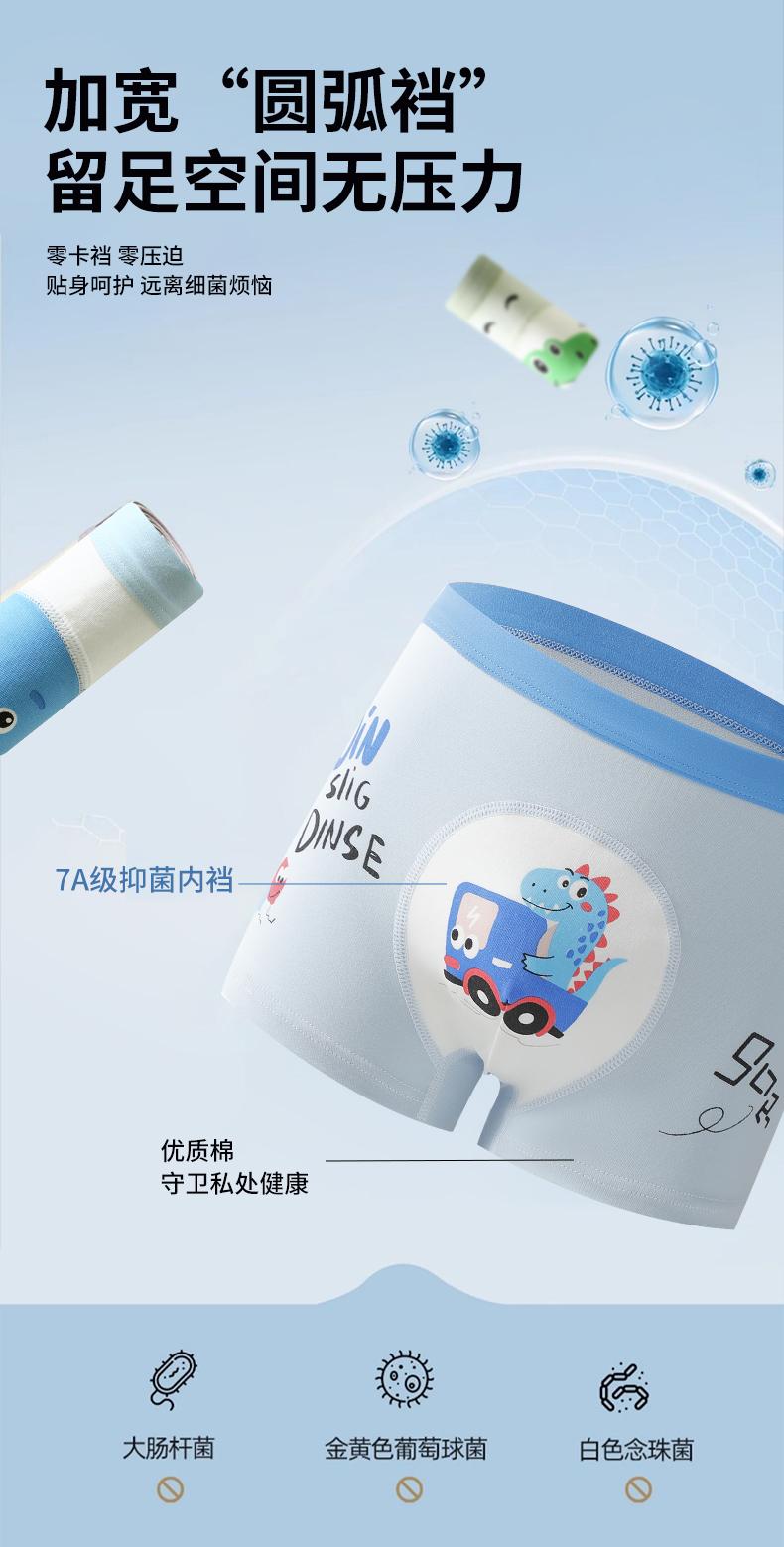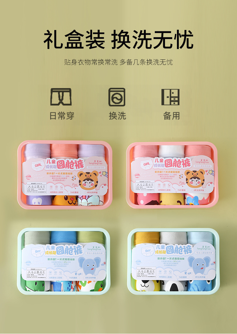 {爆款3条装*2盒}儿童升级版A类圆舱裤7A抑菌儿童圆舱裤纯棉卡通印花高弹力不夹PP男女童平角内裤