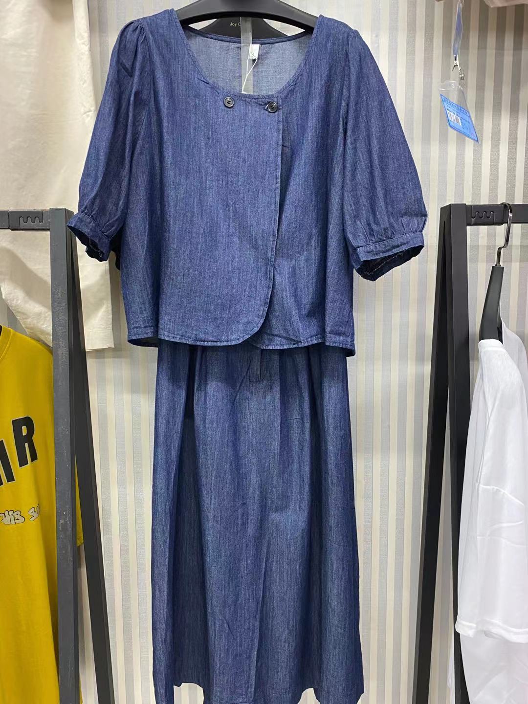佑佑牛仔套裙,时尚休闲版,适合年龄段在20到40之间,M.L两个码,90斤到140斤都可以穿。面料是薄牛仔,手感柔软,亲肤舒适,时尚百搭