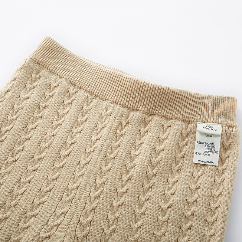 英氏儿童打底裤新款女童秋冬双层保暖长裤毛线裤YRKDJ32262A