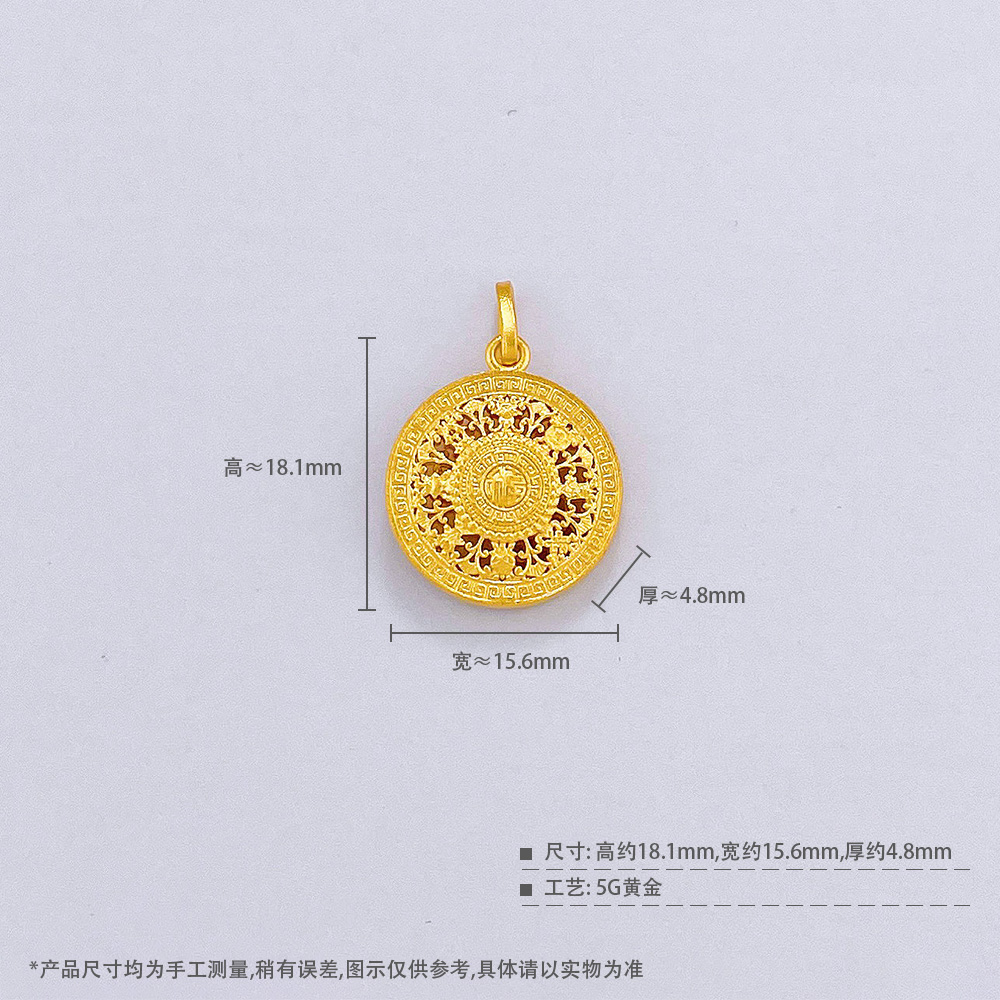 【限时克减150元】足金999 #复古风 #八宝罗盘 (足金999字印)5G黄金镂空福运绵长圆满福字罗盘吊坠(不含链)(5GDZ00555)(预售产品下单后不退款不退货不换货不补差价)