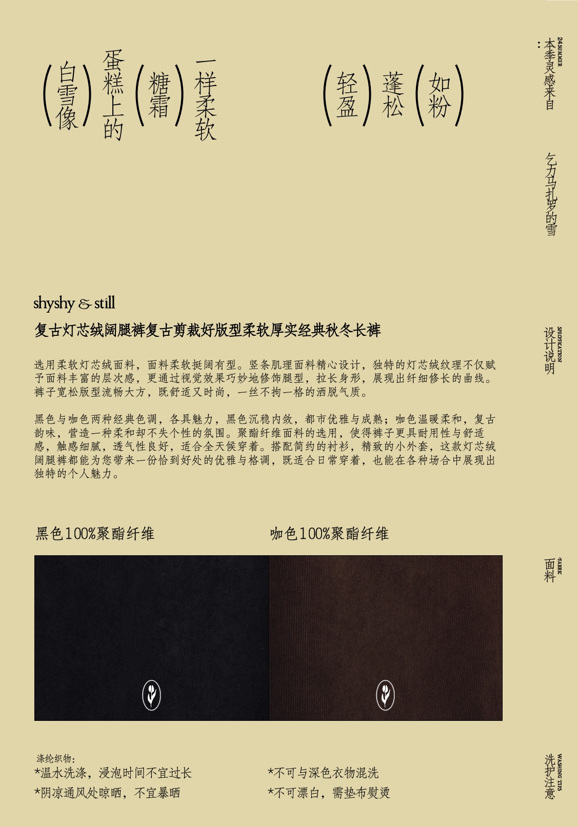 shyshystill/shy202411016/复古剪裁柔软厚实经典秋冬长裤