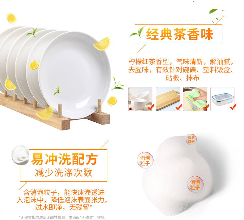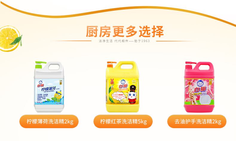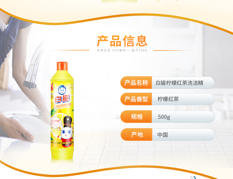 【百】白猫柠檬红茶洗洁精500克小瓶装家庭