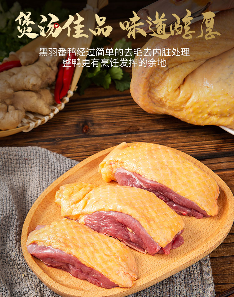洛江山头水库散养270天黑羽土番鸭母(杀完带内脏1.9kg±200g/只)