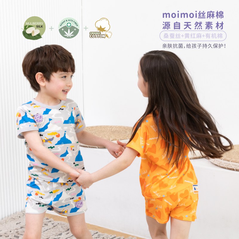 moimoi面料主要来自黄红麻、桑蚕丝、等天然材质,并且利用材质的自然结构纹理和特性,无磨毛和拉绒处理,不粘不闷,不掉毛不起球,不产生静电。我们拒绝使用化学添加剂来增加软滑性,衣服久洗不变形不变硬,让孩子身体保持持久的健康舒适。