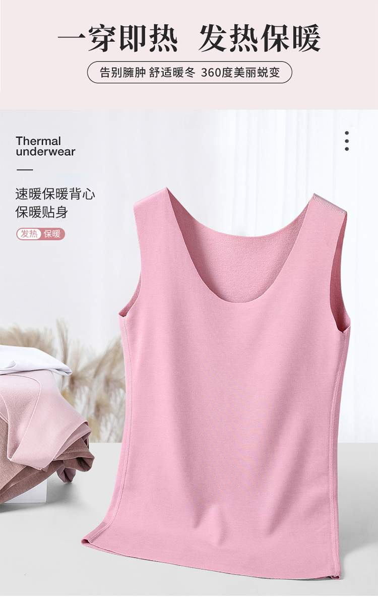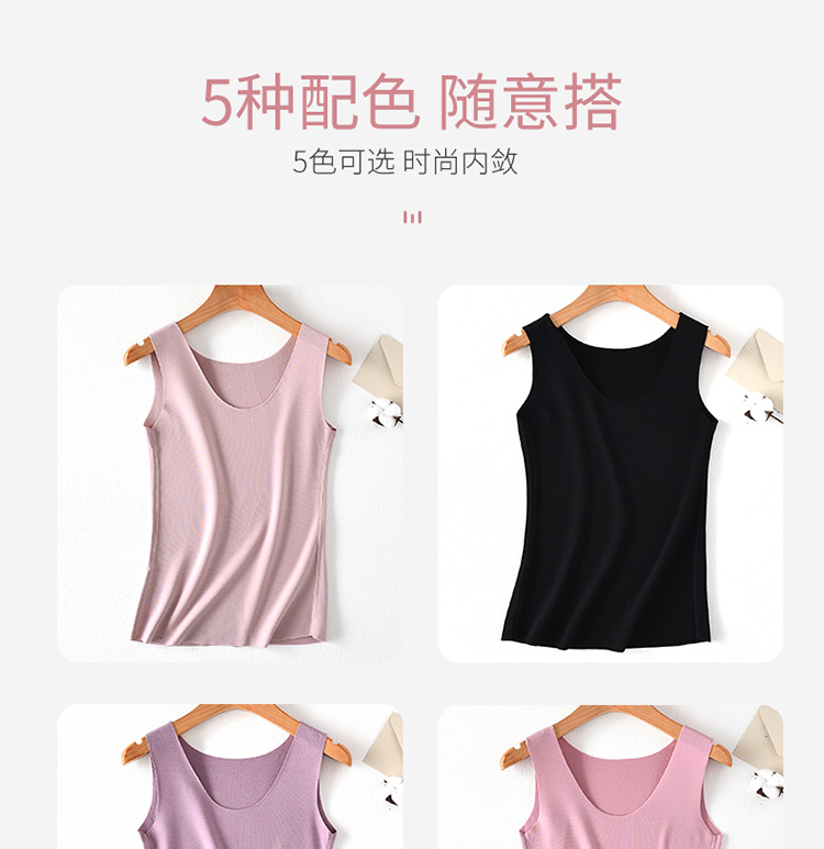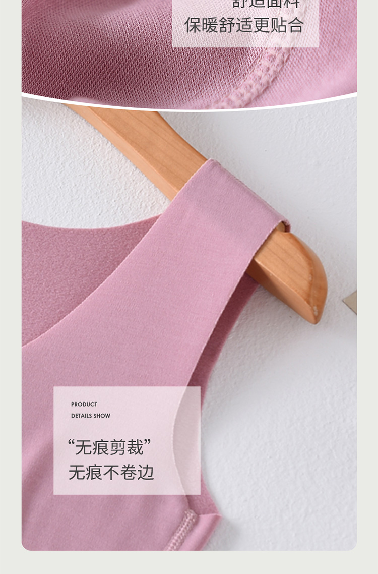 芬腾保暖背心女士带胸垫秋冬季纯色舒适内衣绵羊毛内搭打底衫上衣