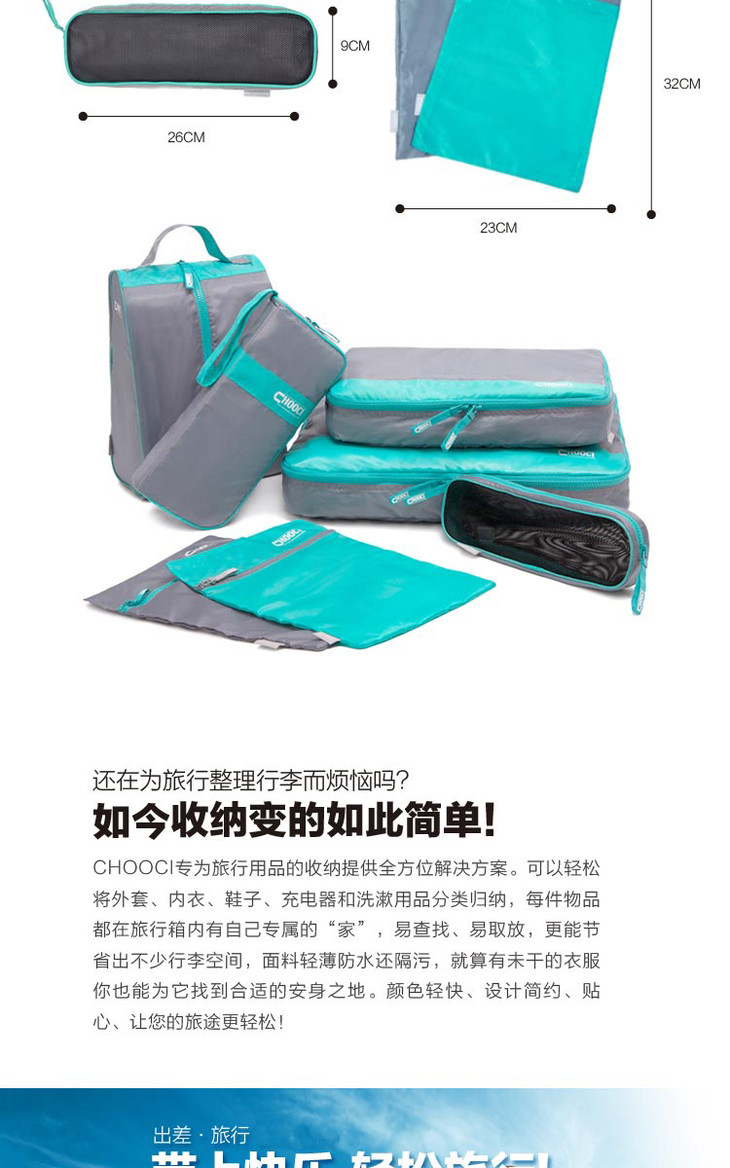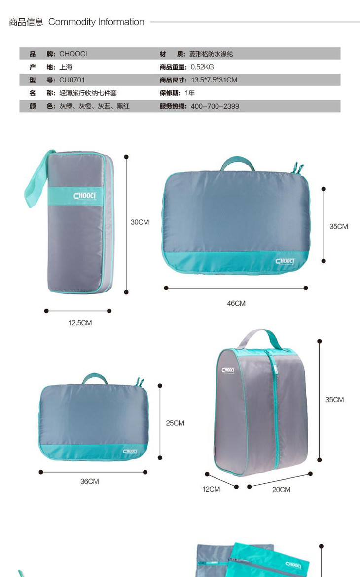 CHOOCI轻薄旅行收纳七件套CU0701出行衣服袋鞋袋洗漱包防水