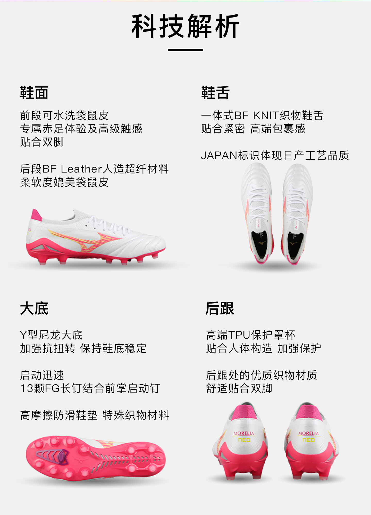 小李子Mizuno美津浓 莫雷拉Morelia Neo 4 高端FG长钉成人足球鞋男