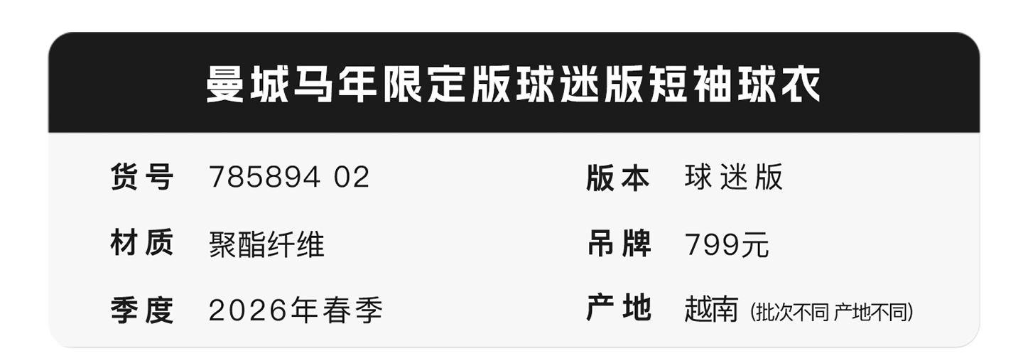小李子PUMA彪马曼城马年限定球迷版短袖球衣成人男785894 02