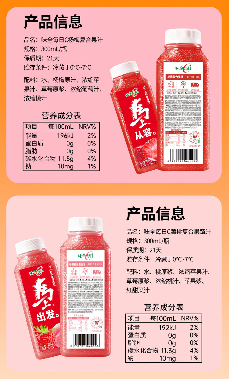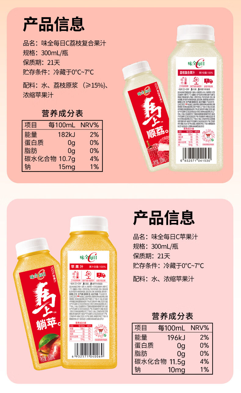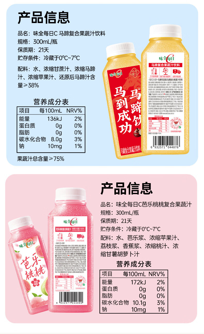 味全每日C芭乐桃桃复合果蔬汁300ml