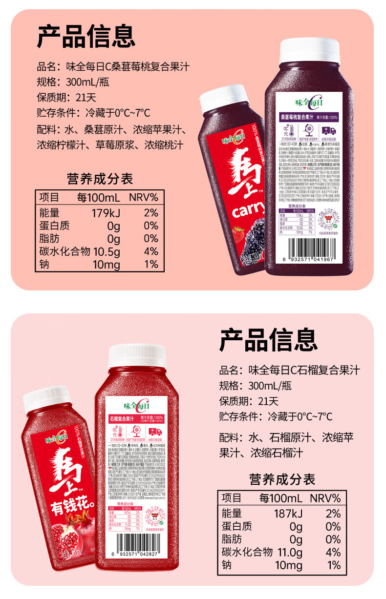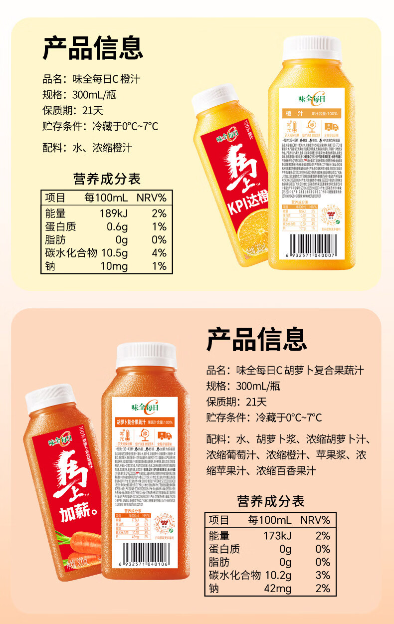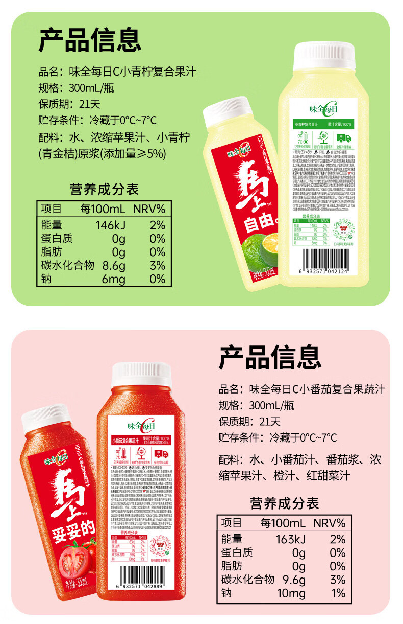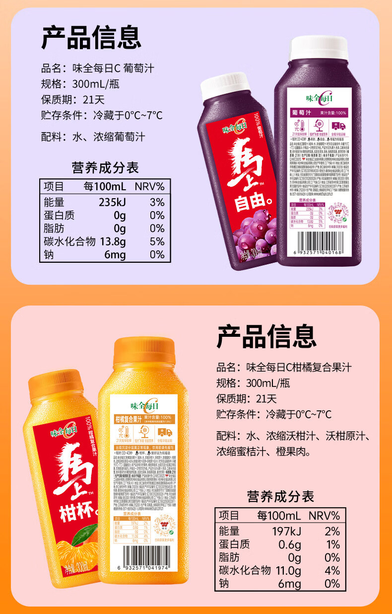味全每日C芭乐桃桃复合果蔬汁300ml