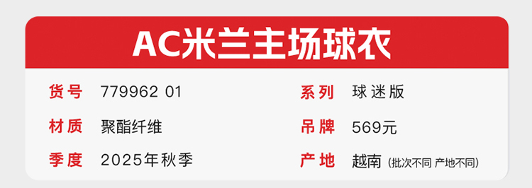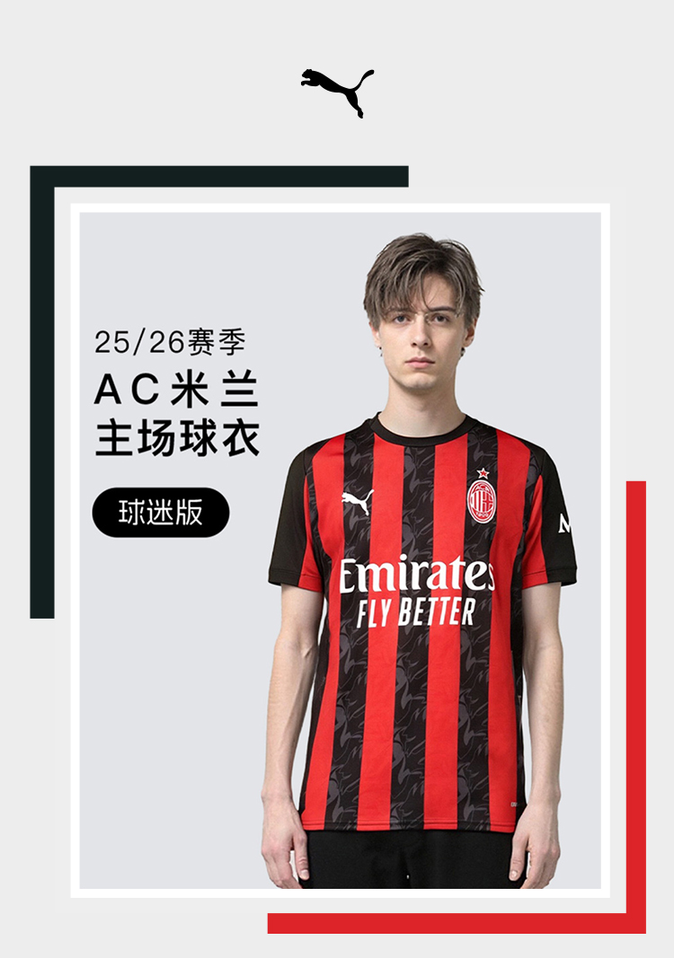 小李子PUMA彪马25-26赛季AC米兰主场球迷版短袖比赛球衣779962 01