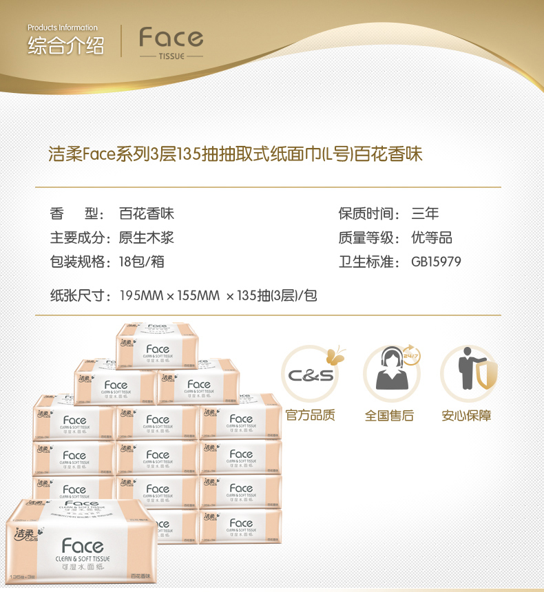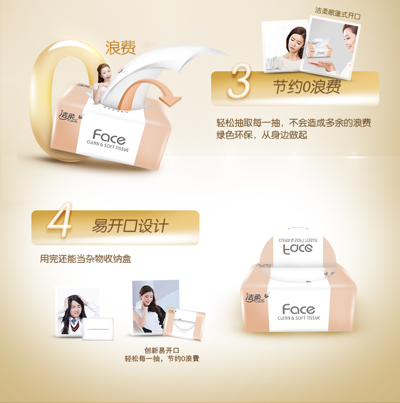 洁柔抽纸家用餐巾纸面巾纸擦手纸