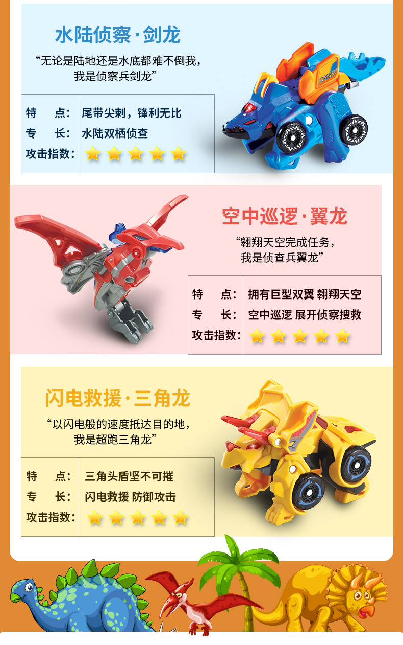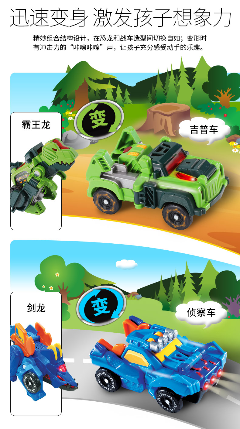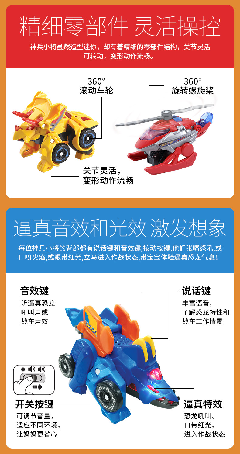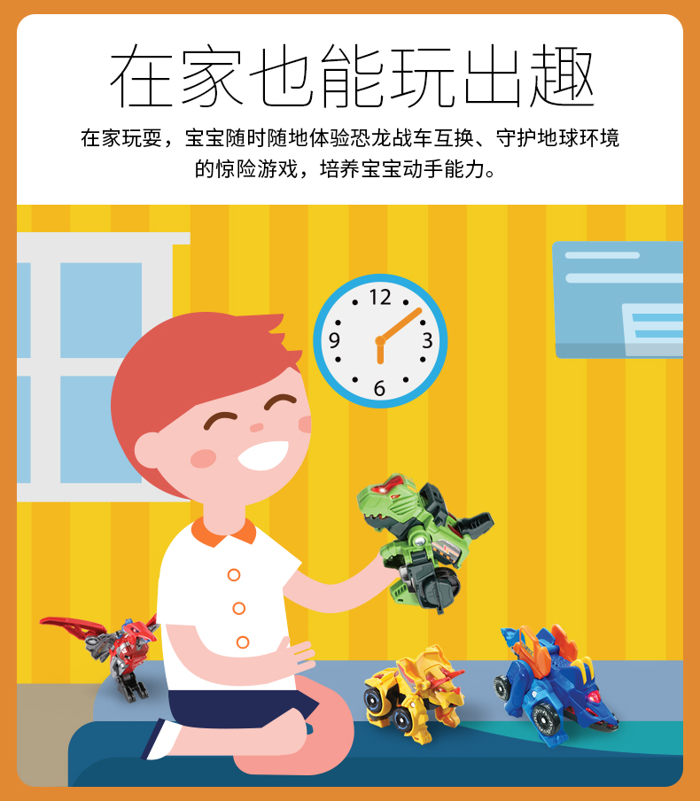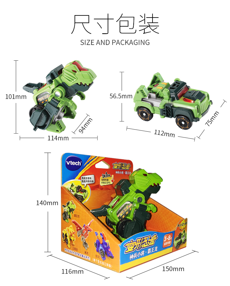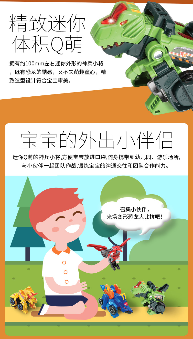 伟易达VTech变形恐龙神兵小将变形机器玩具战车小型耐摔男孩3-4岁