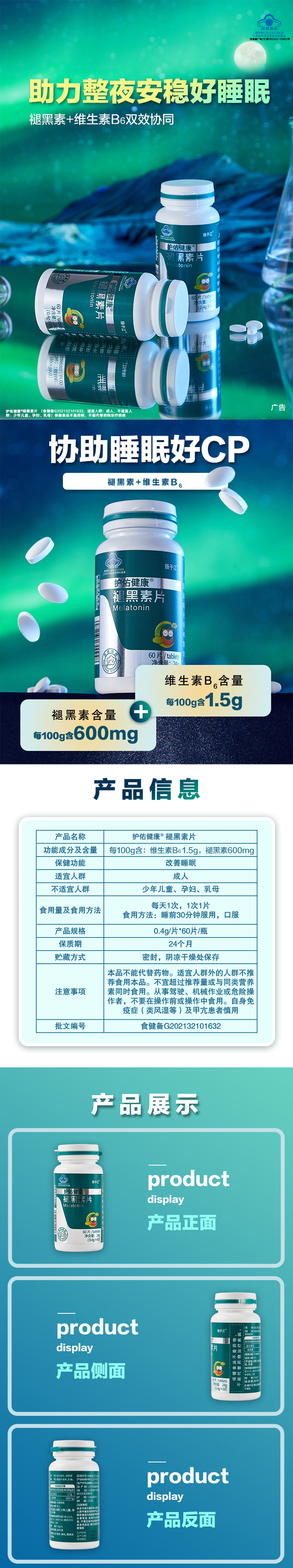 护佑褪黑素片60片/瓶 1瓶分享【分销专享链接】