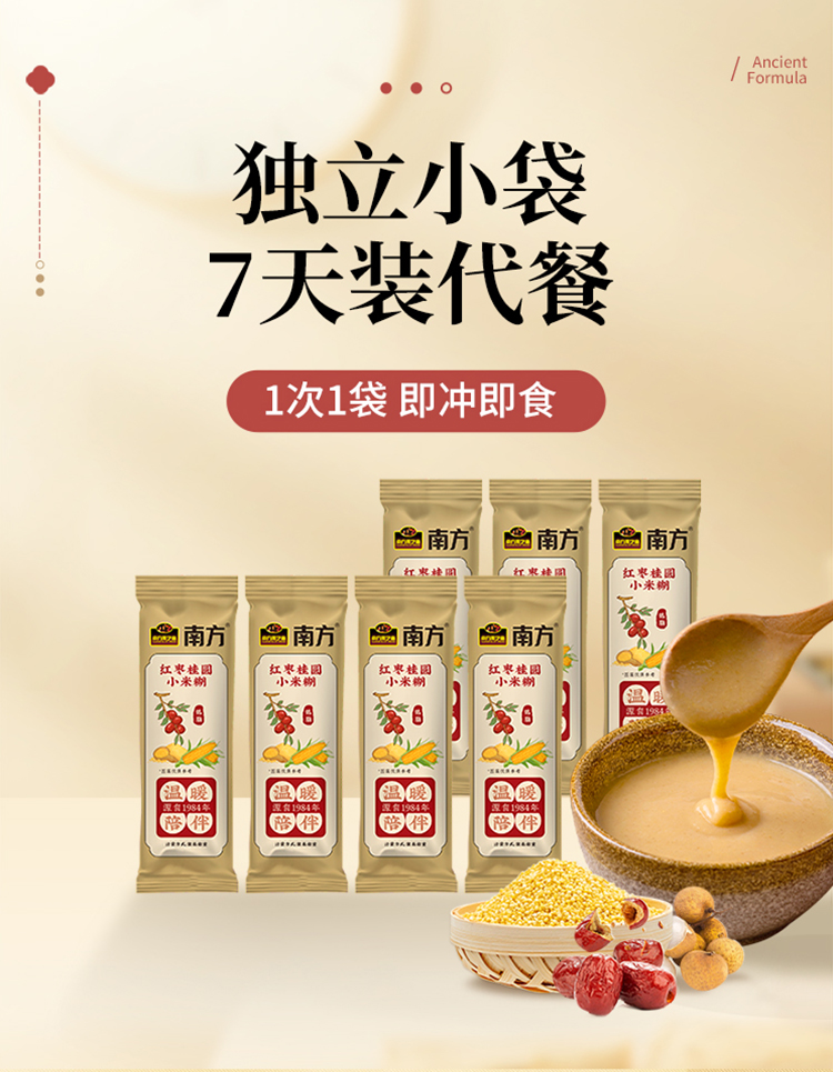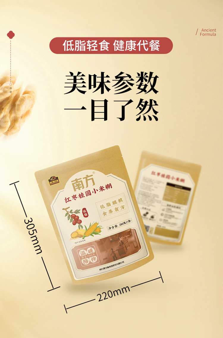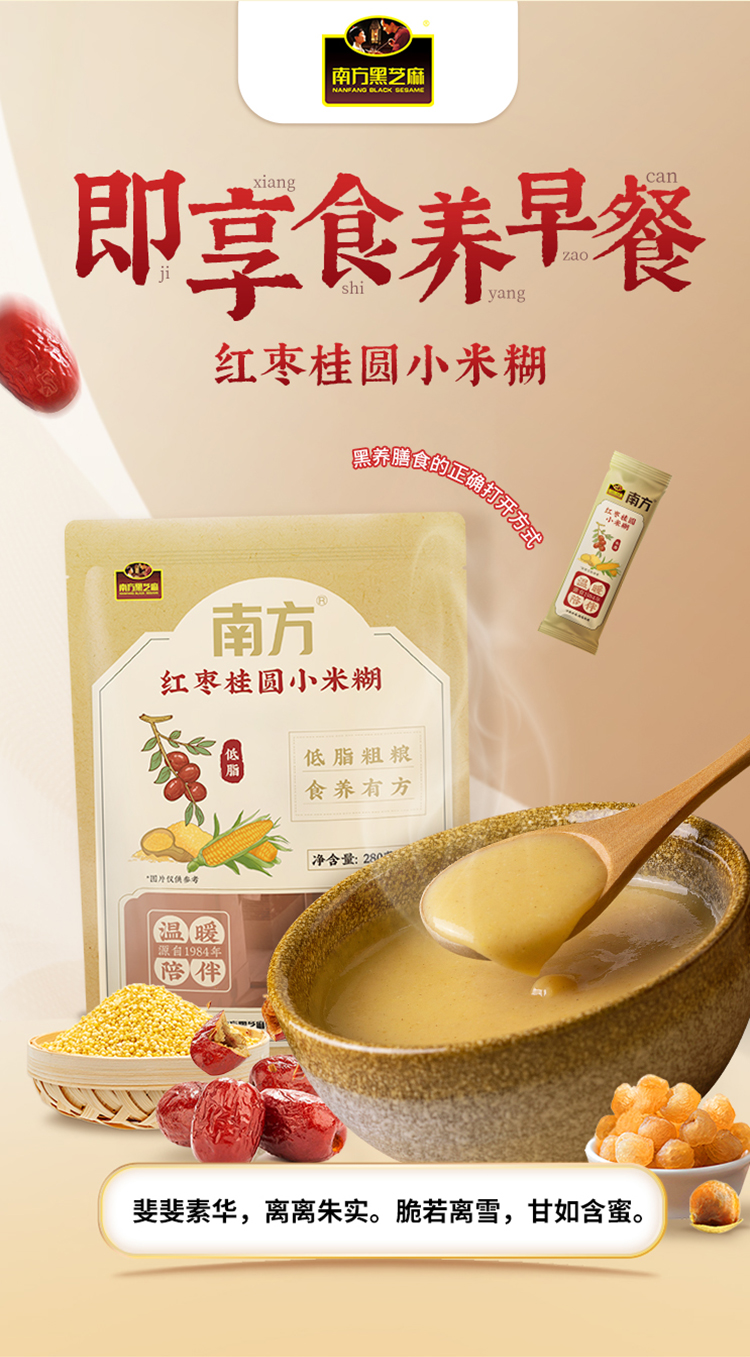 南方黑芝麻红枣桂圆小米糊280g低脂代餐免煮老少皆宜营养早餐速食粥冲饮五谷物宵夜