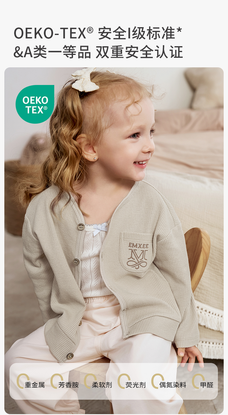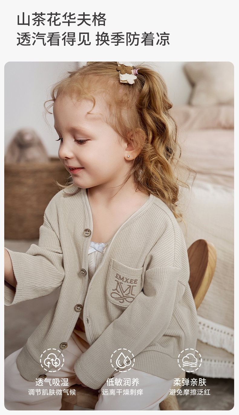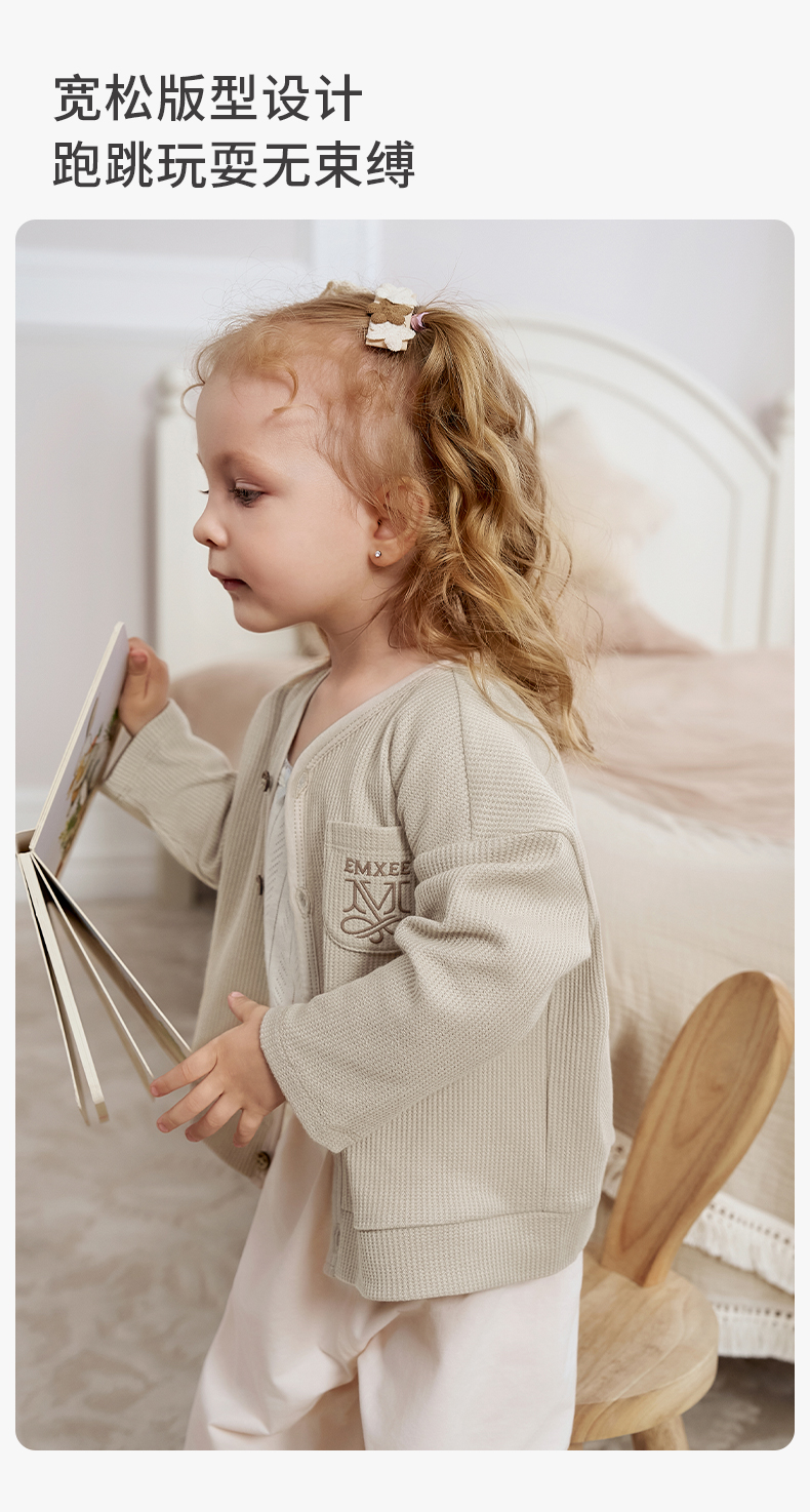 【宝宝服饰】嫚熙童装儿童华夫格针织衫男女童薄款宝宝开衫外套婴儿秋款上衣