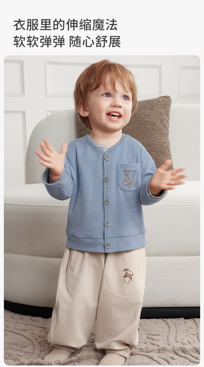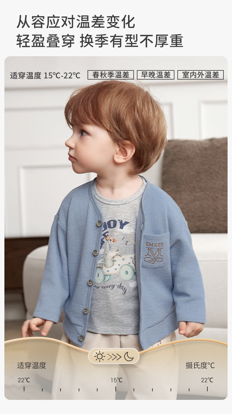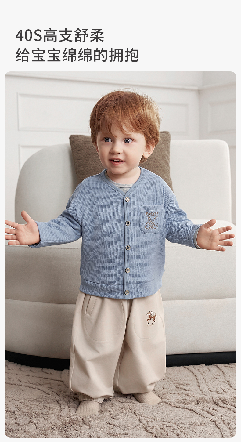 【宝宝服饰】嫚熙童装儿童华夫格针织衫男女童薄款宝宝开衫外套婴儿秋款上衣