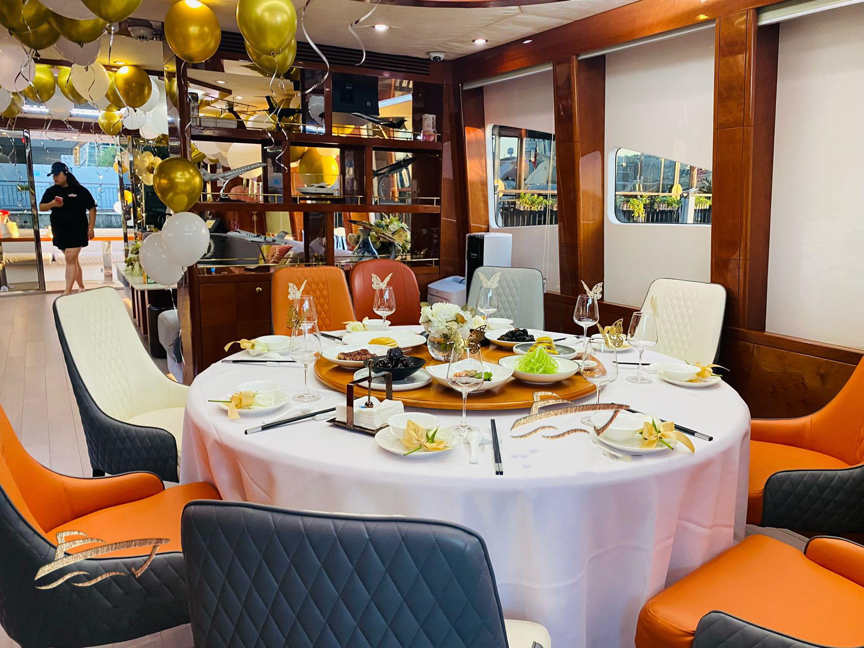 船宴套餐内容:出航1小时➕停泊2小时➕8~10人外滩私房菜➕果盘软饮茶水畅饮➕1瓶法国红酒➕简单生日布置一套