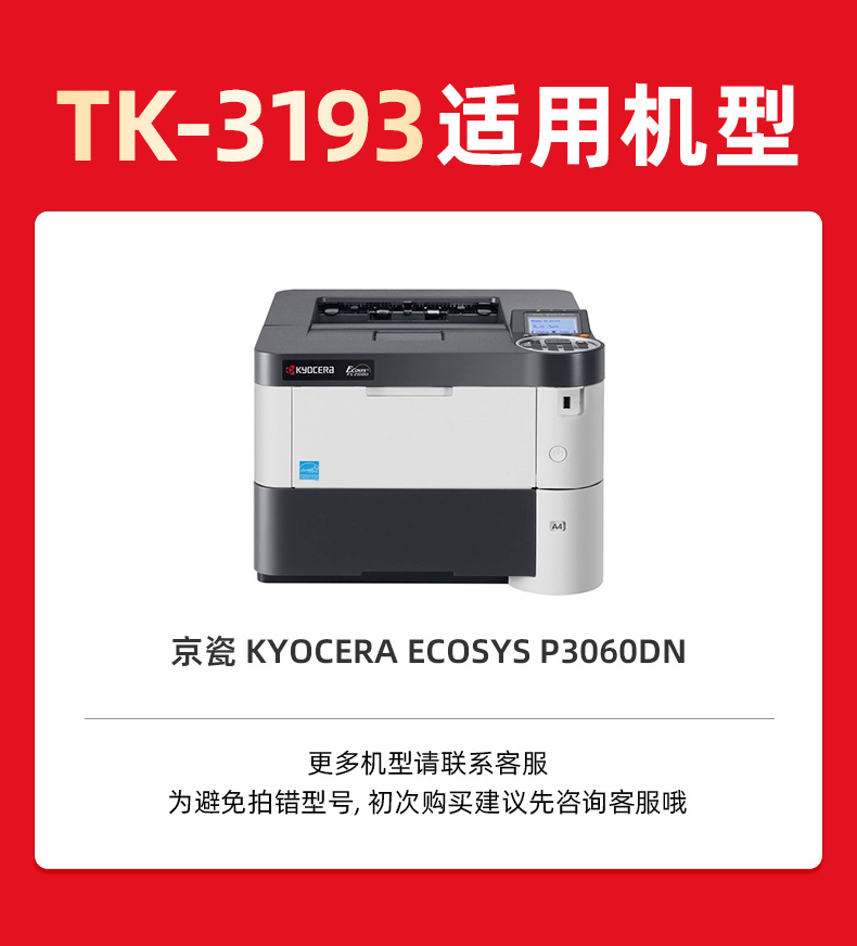 绘威TK-3193粉盒 适用京瓷Kyocera ECOSYS P3060dn复合机墨盒 碳粉盒 墨粉盒 碳粉 墨粉