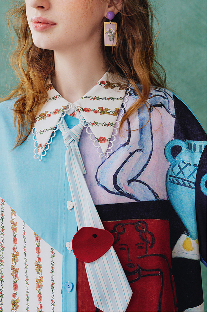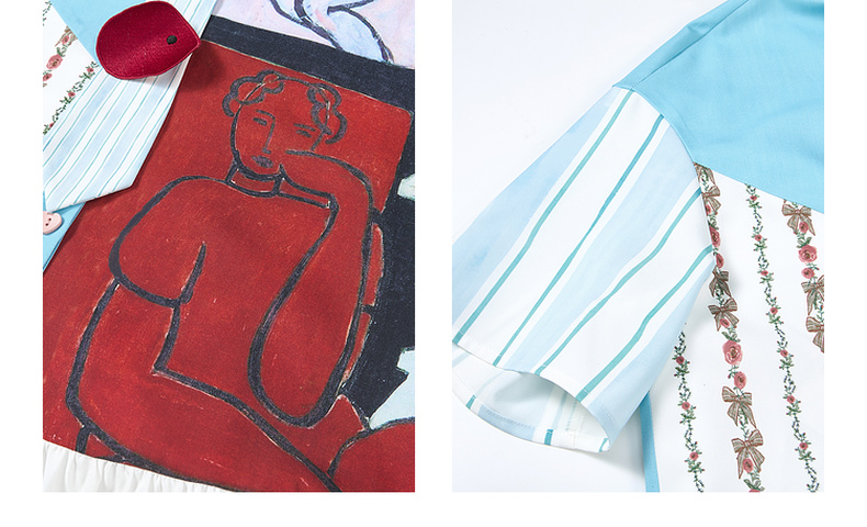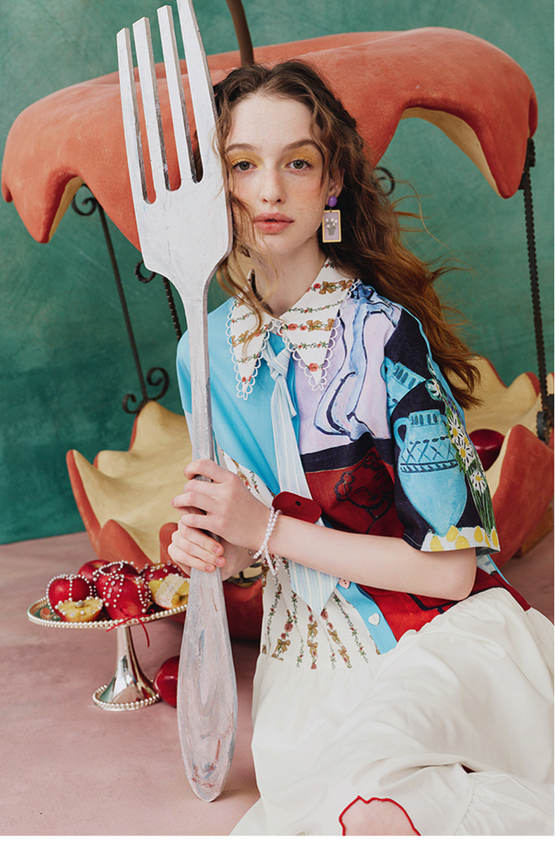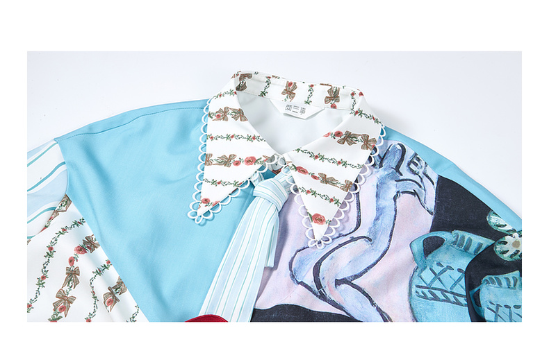 两三事月移花影夏季新款复古印花绑带长袖衬衫女宽松衬衣