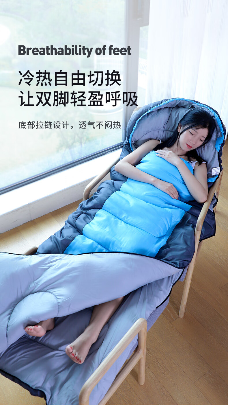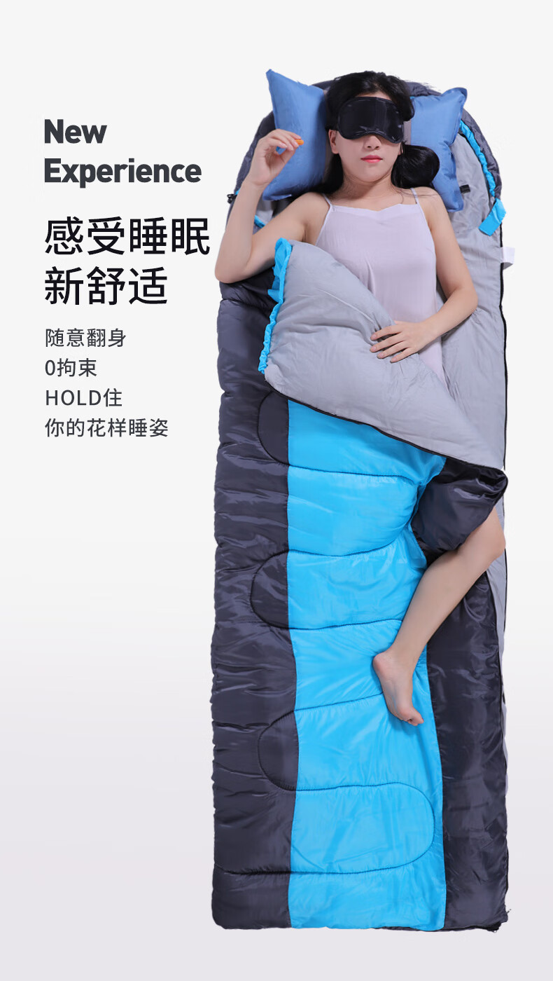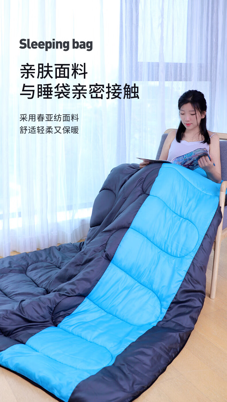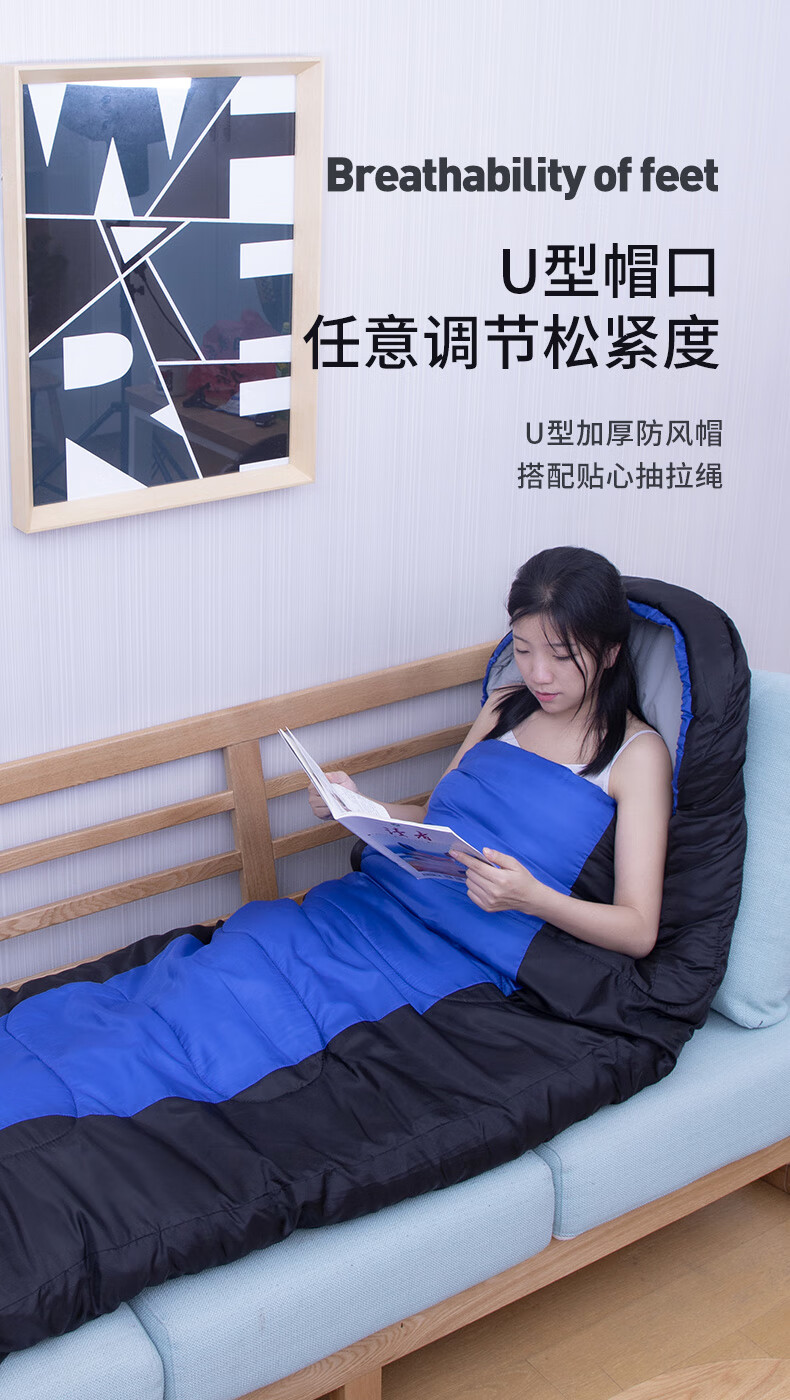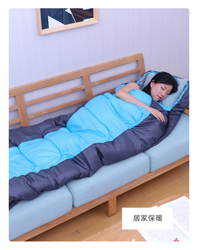狼行者 户外睡袋 登山露营保暖防寒睡袋拼接单人信封式加厚棉睡袋1.3kg 1.3kg家居款-蓝色