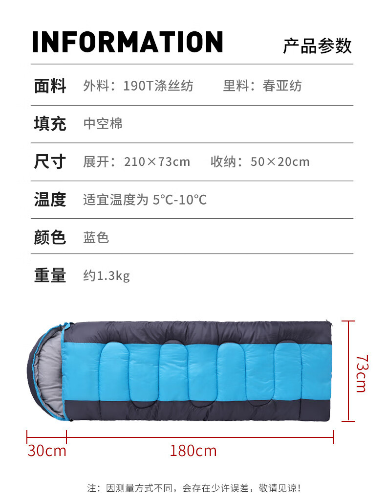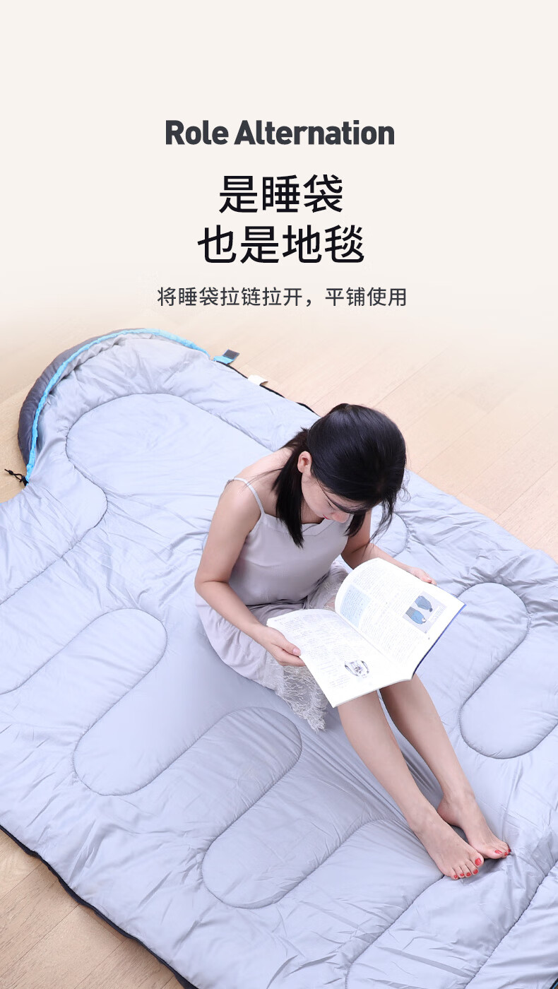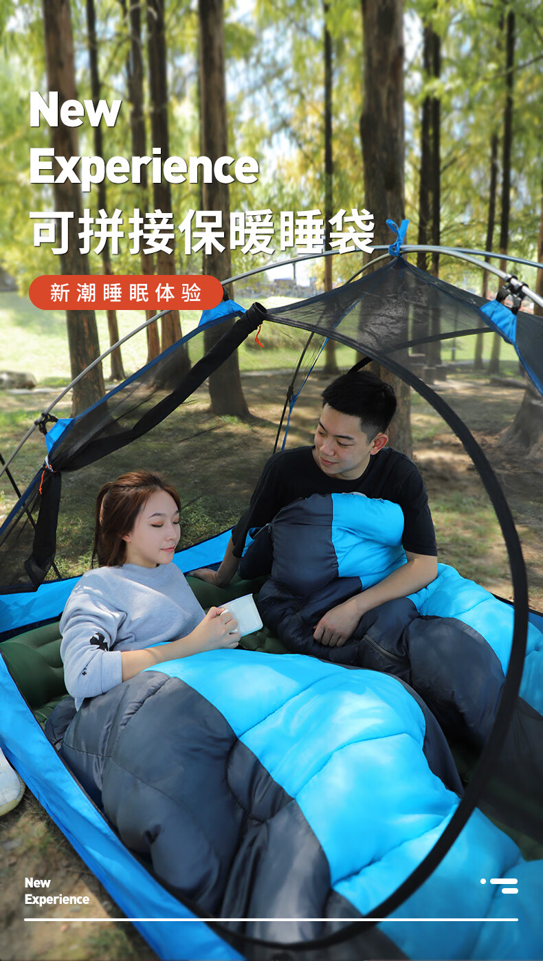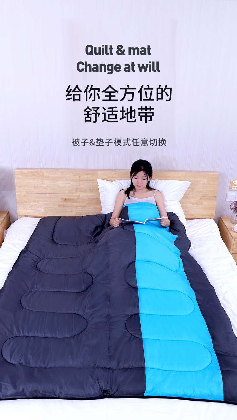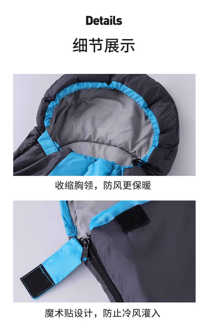 狼行者 户外睡袋 登山露营保暖防寒睡袋拼接单人信封式加厚棉睡袋1.3kg 1.3kg家居款-蓝色