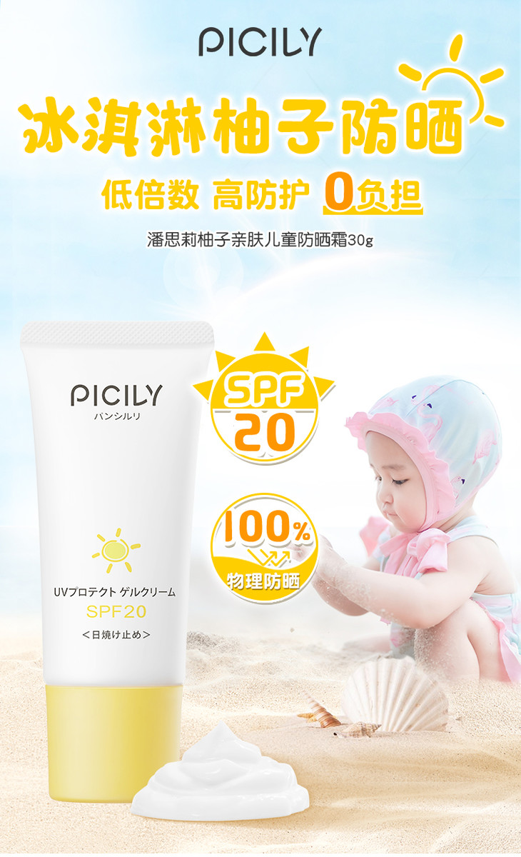 潘思莉宝宝防晒霜30g 温和亲肤防水防汗 6月+