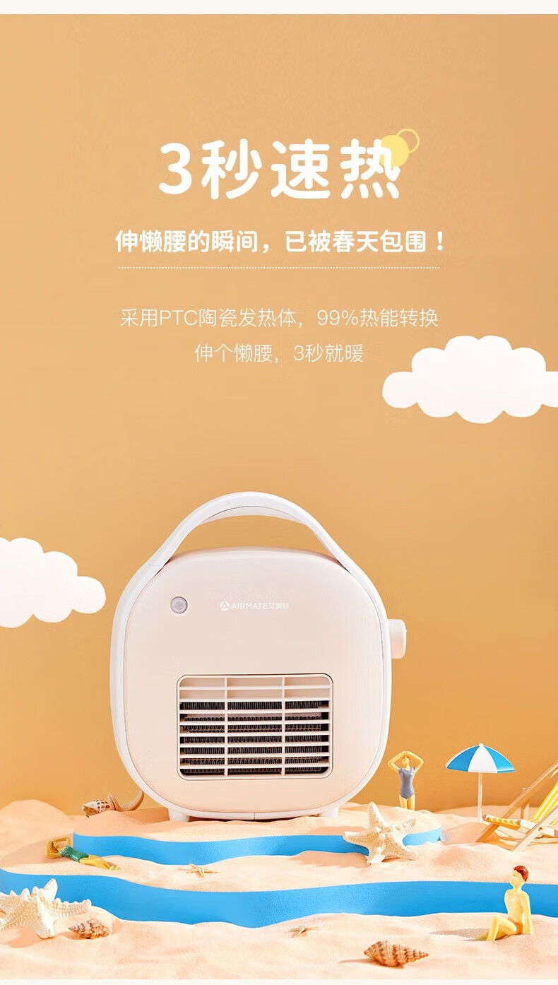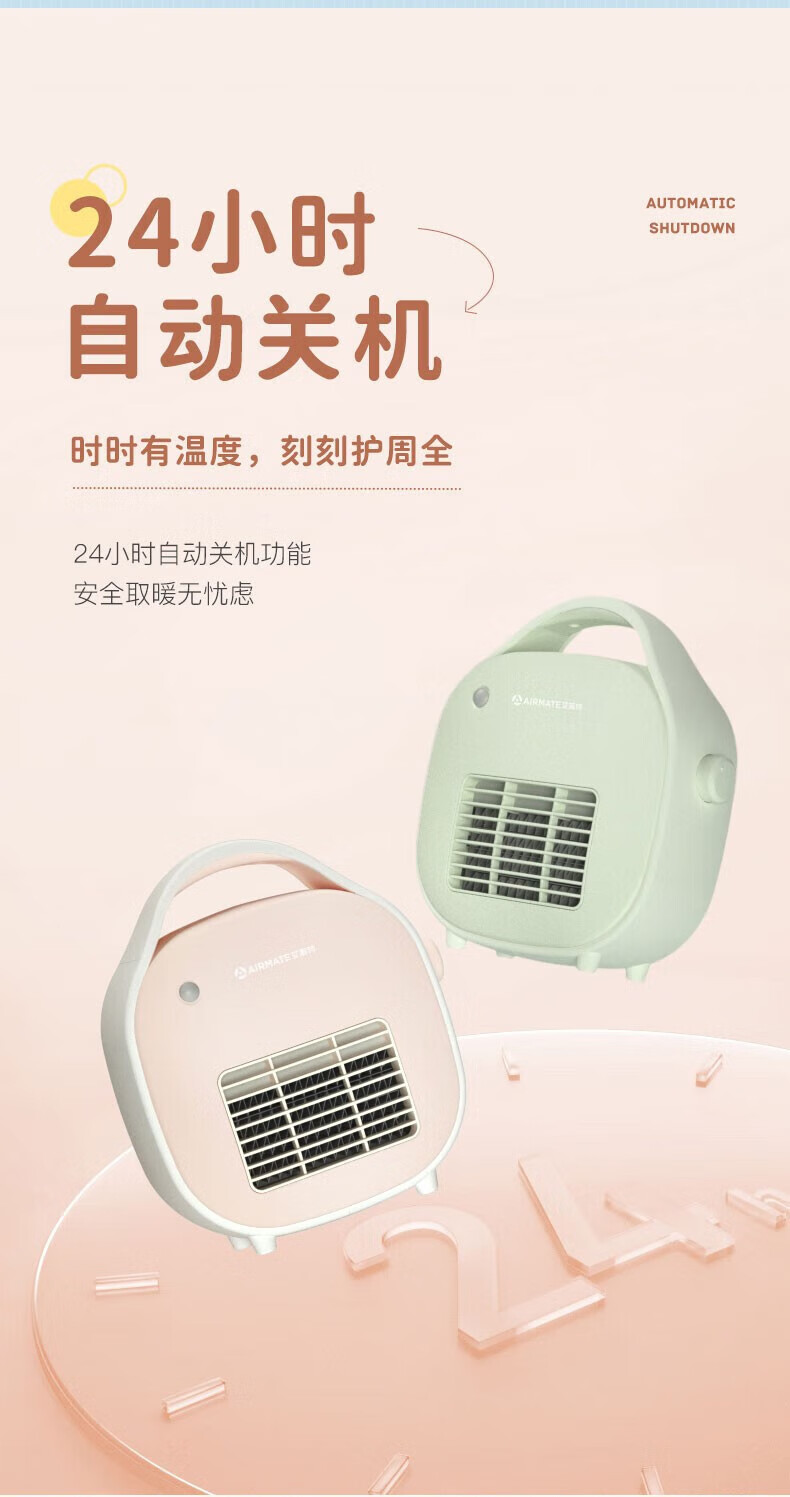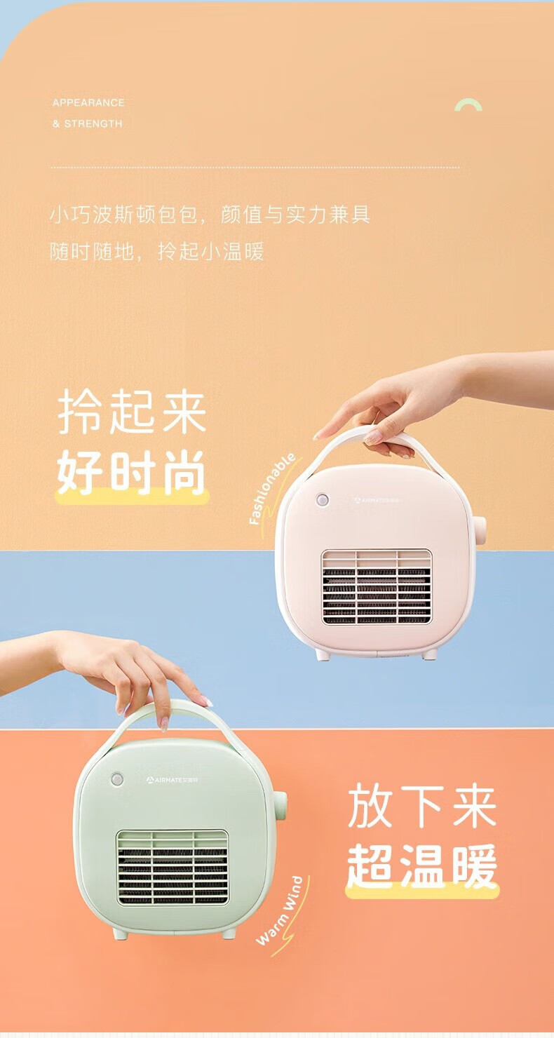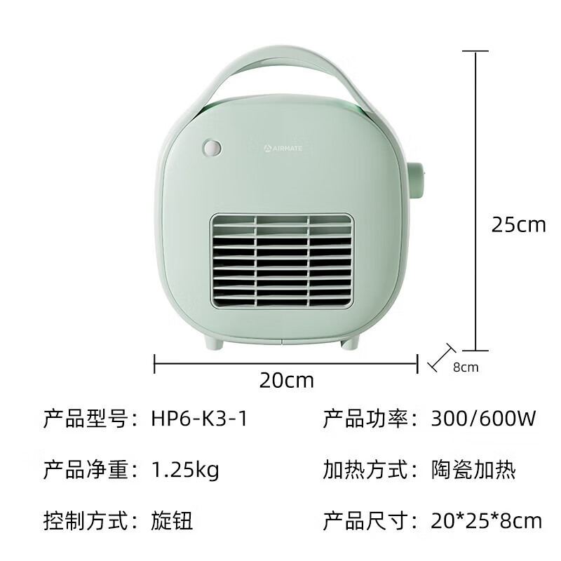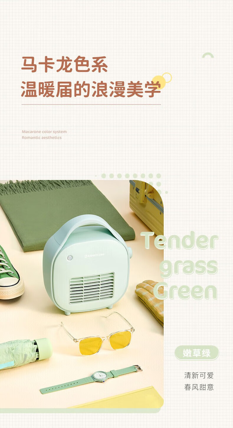 艾美特(AIRMATE)小型暖风机取暖器便携办公室家用桌面节能宿舍速热迷你热风机 嫩芽绿HP6-K3 HF