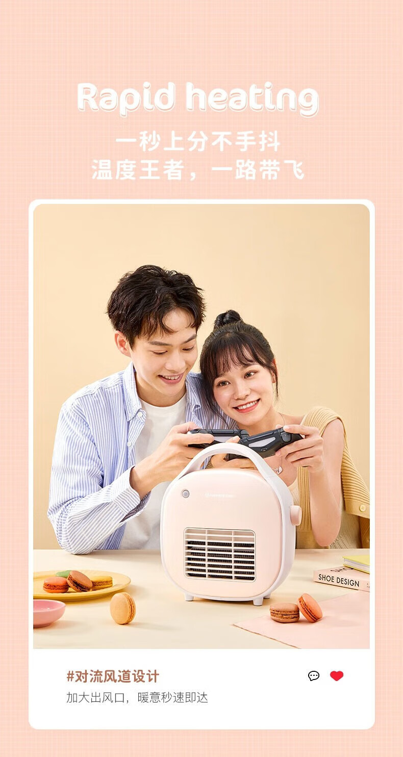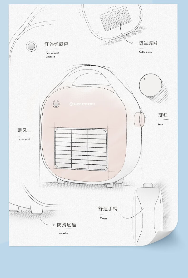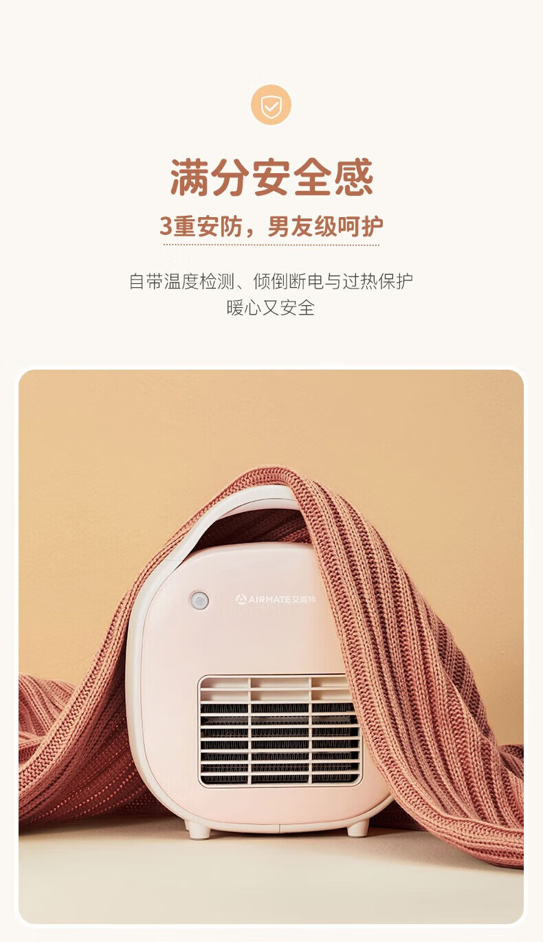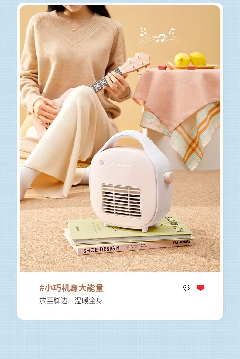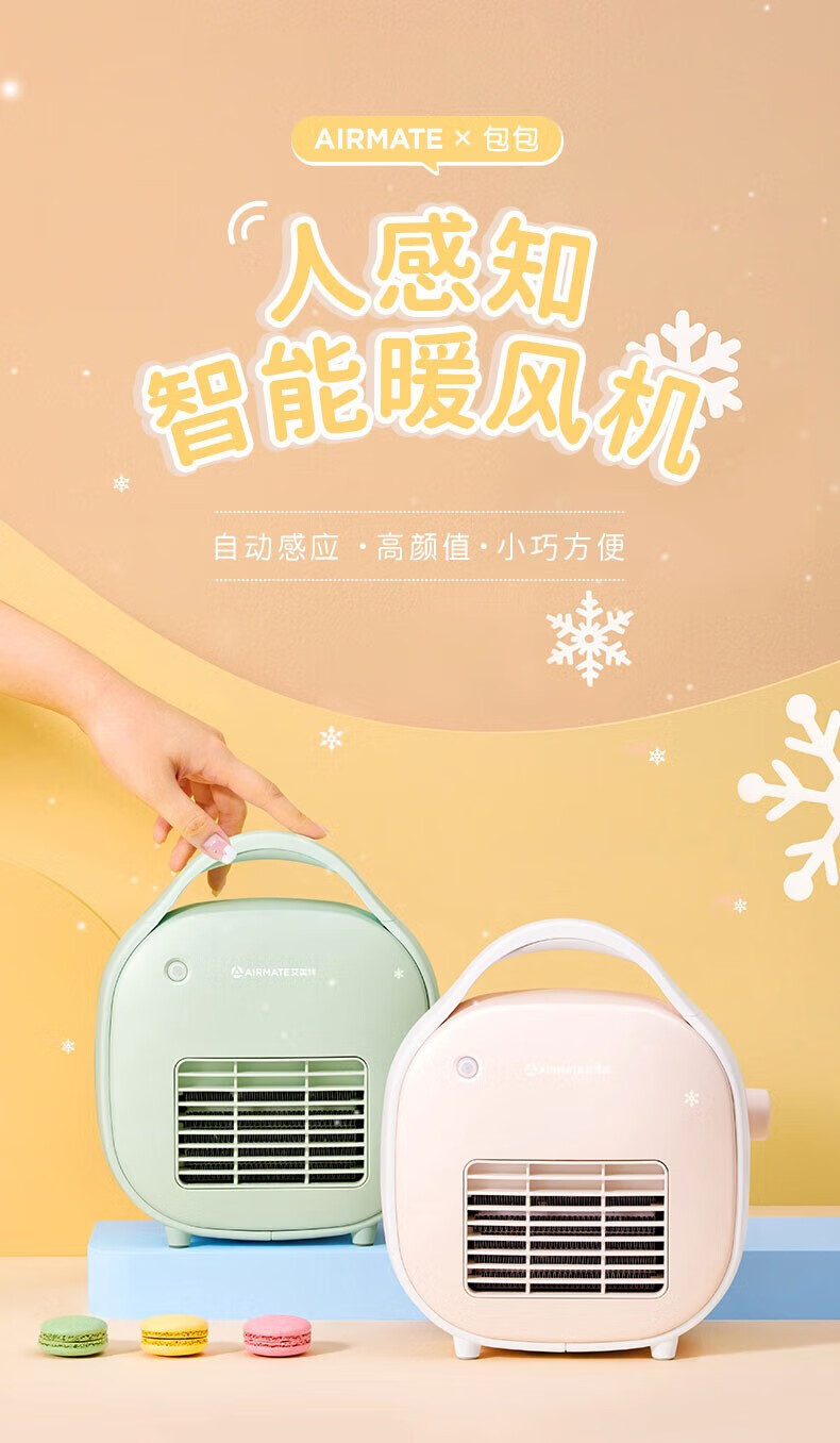 艾美特(AIRMATE)小型暖风机取暖器便携办公室家用桌面节能宿舍速热迷你热风机 嫩芽绿HP6-K3 HF