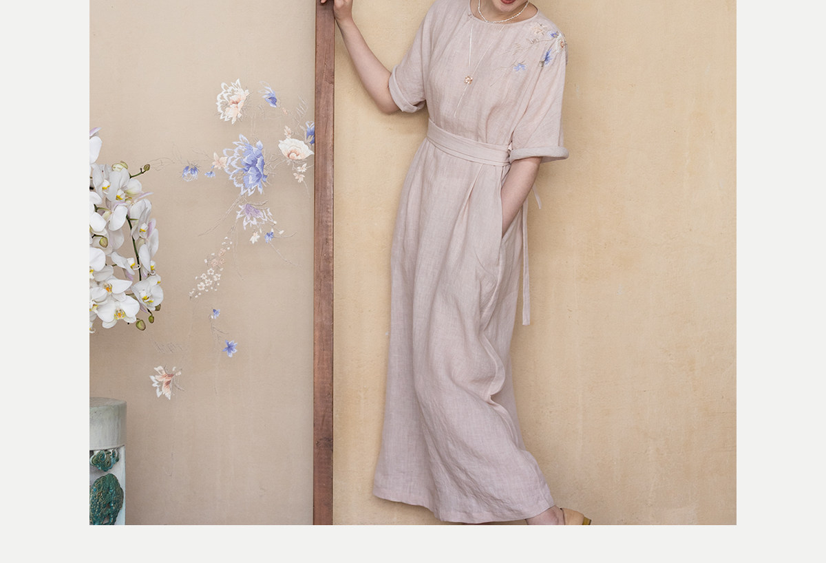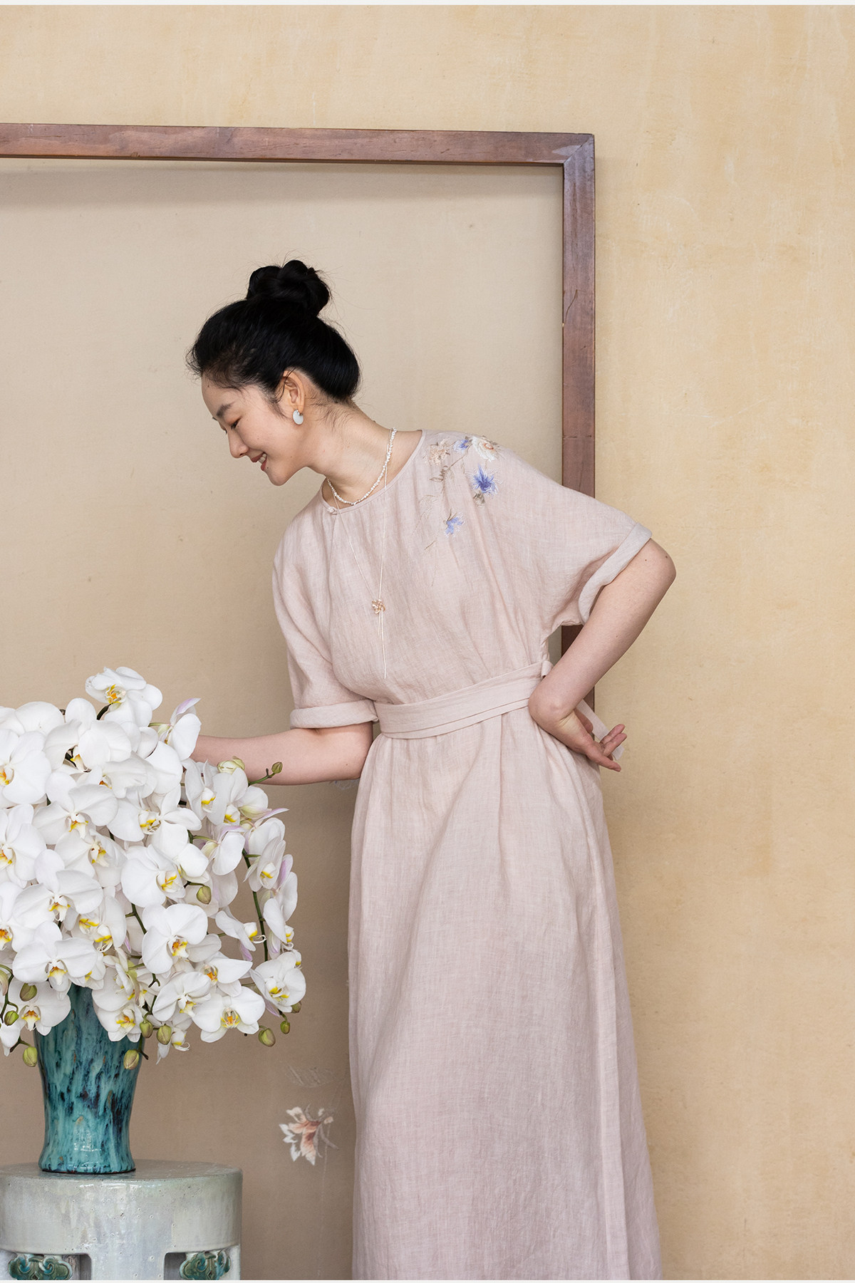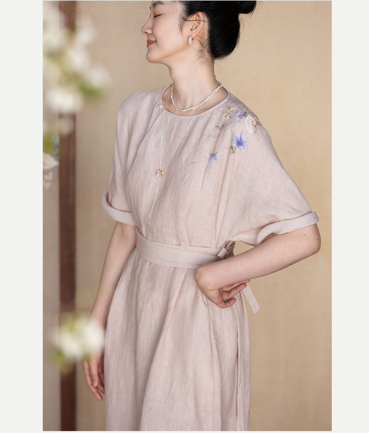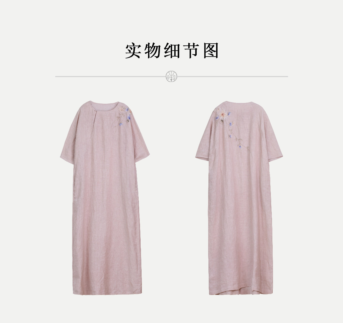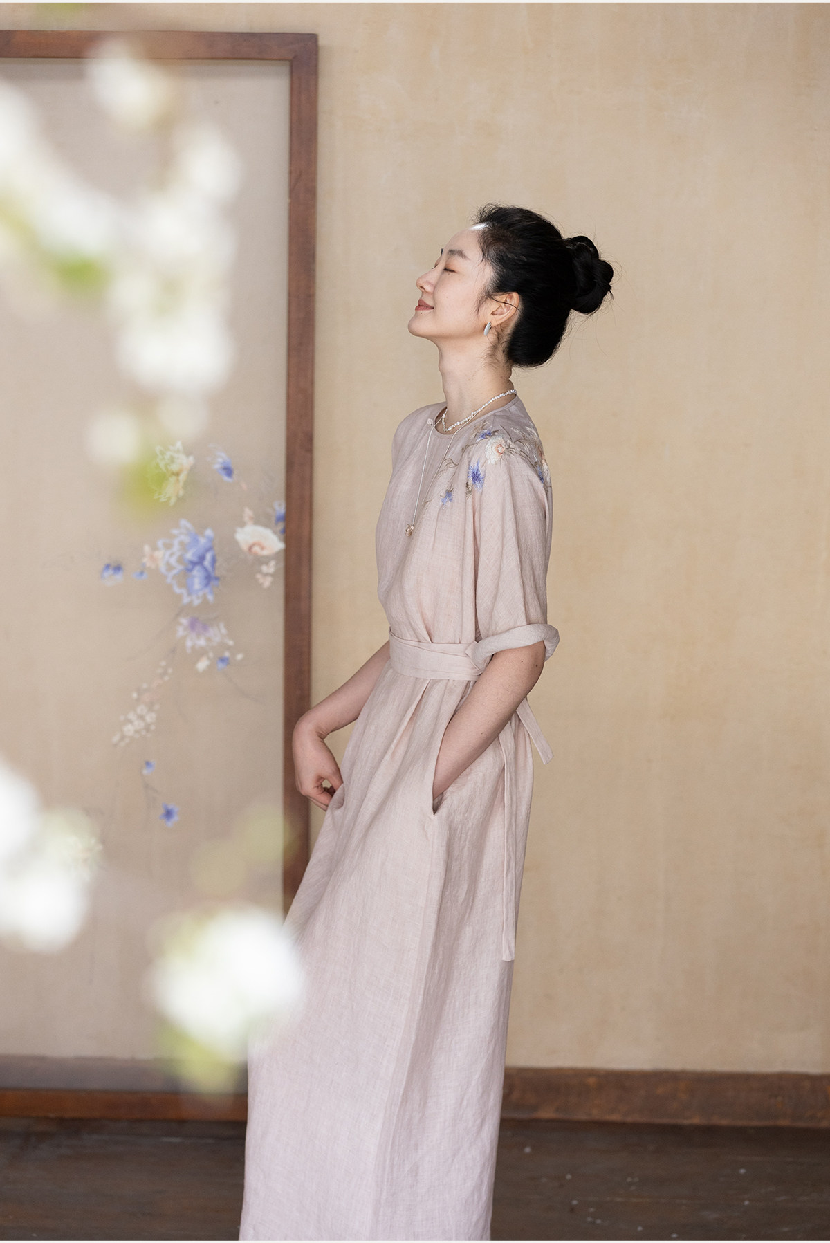 牧衣游原创 重工手绣汉麻连衣裙女新款宽松轻薄古朴文艺长裙 晴川