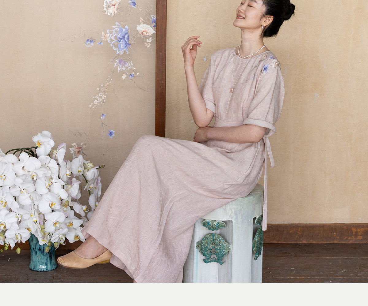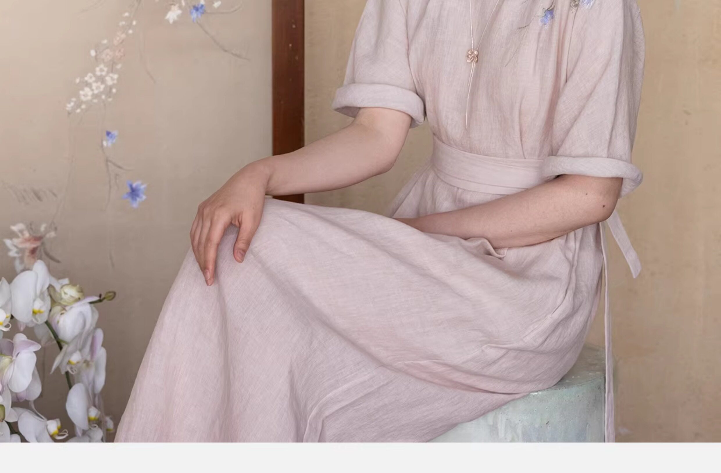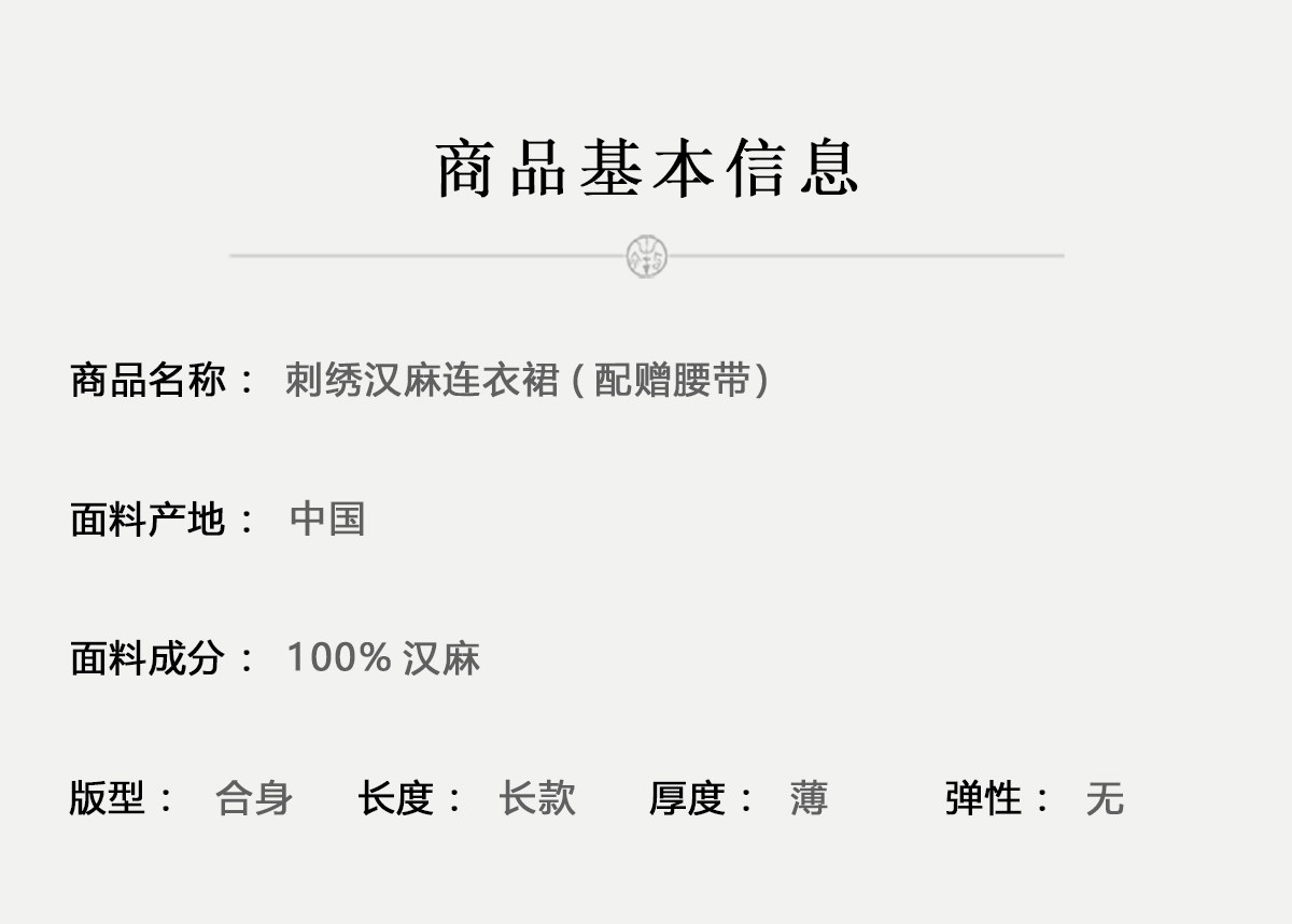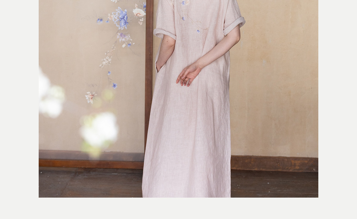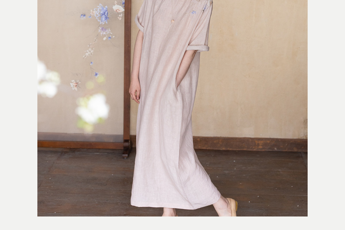 牧衣游原创 重工手绣汉麻连衣裙女新款宽松轻薄古朴文艺长裙 晴川