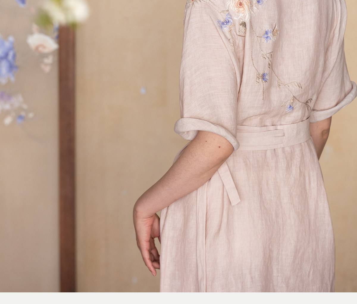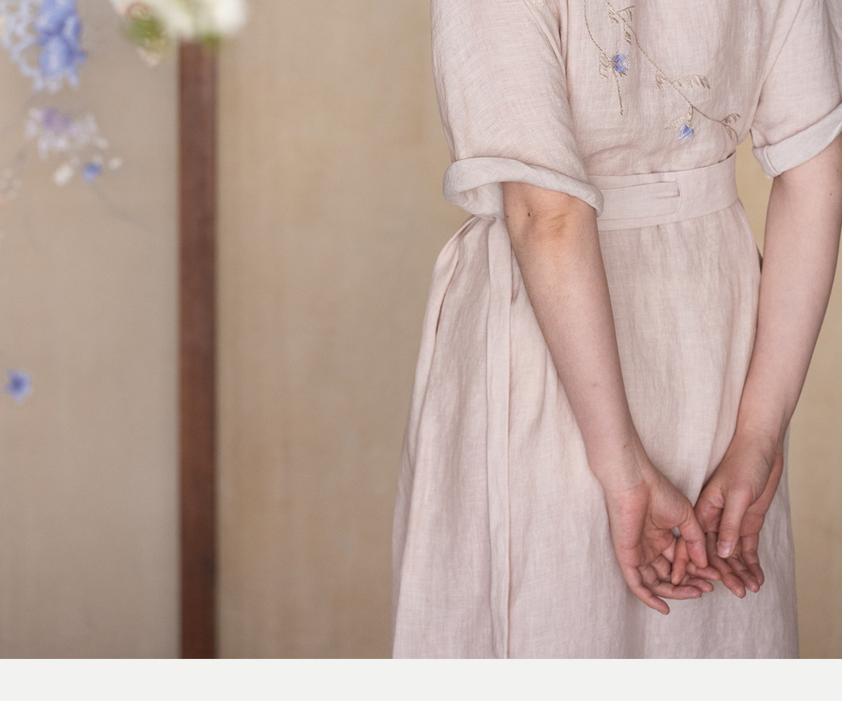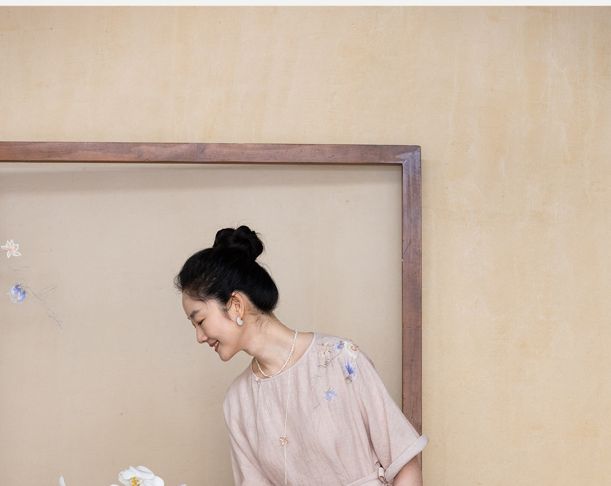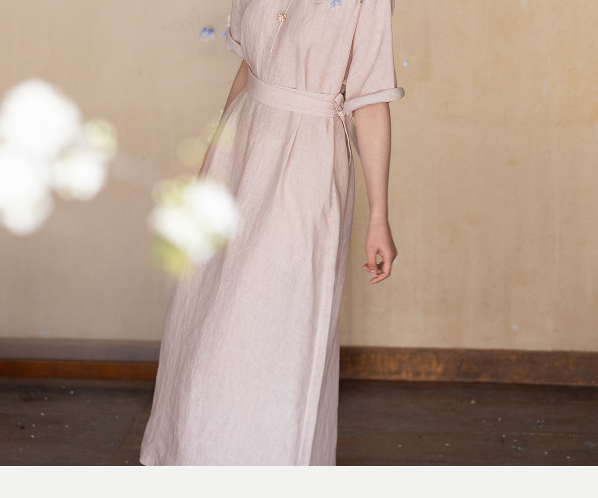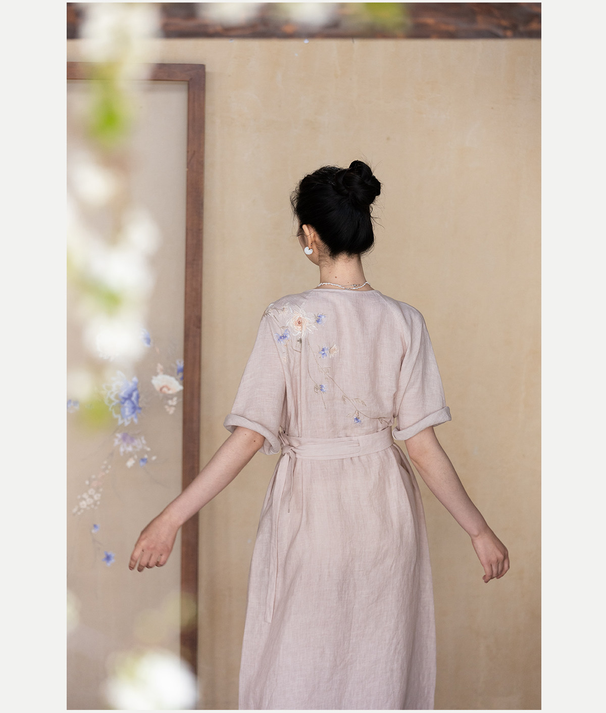 牧衣游原创 重工手绣汉麻连衣裙女新款宽松轻薄古朴文艺长裙 晴川