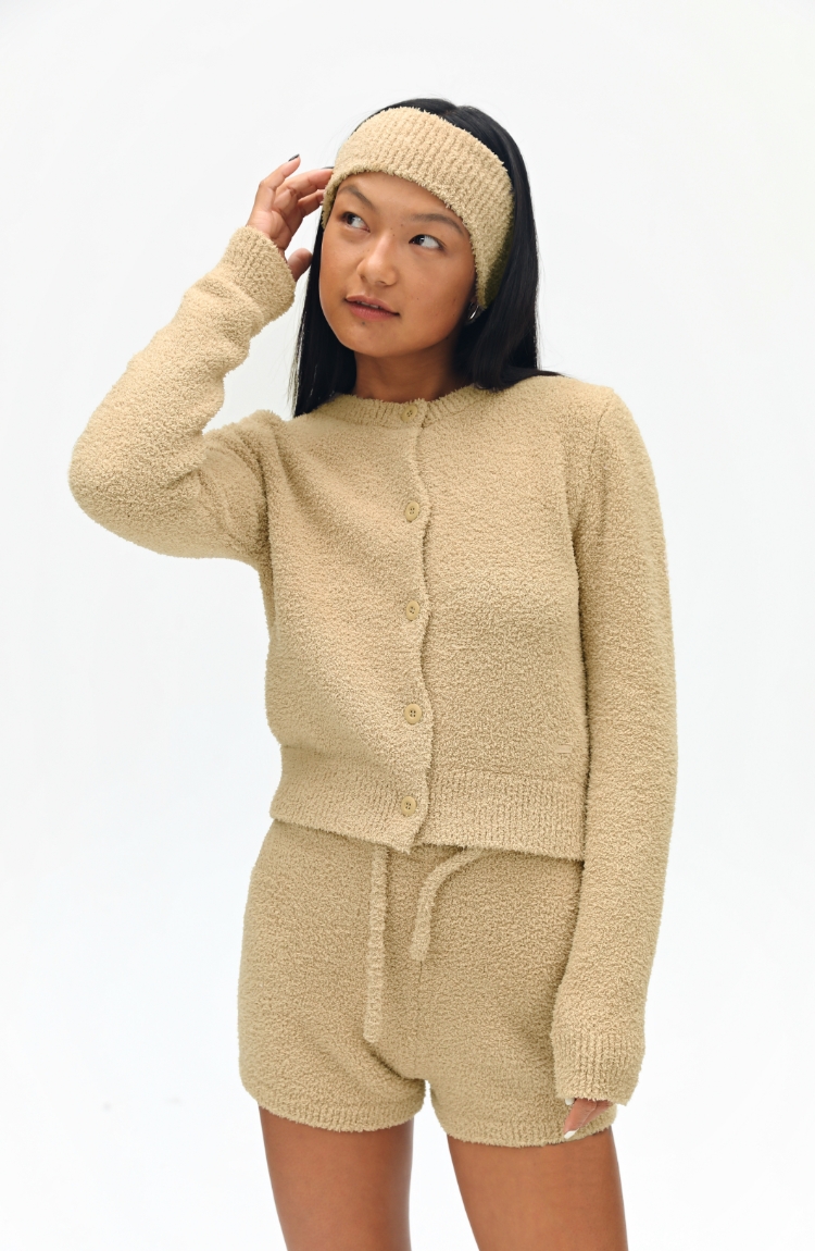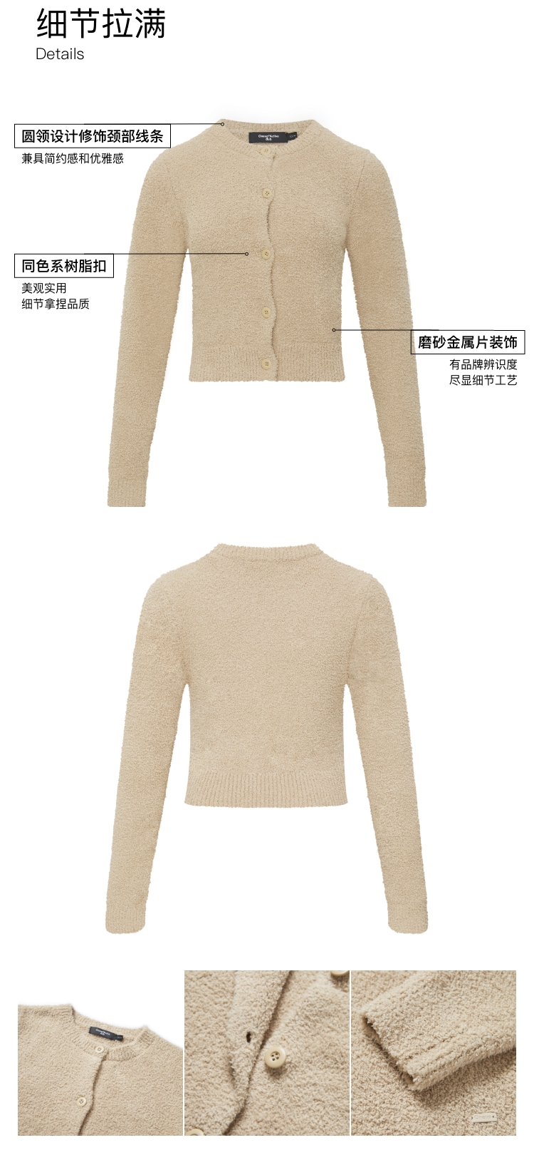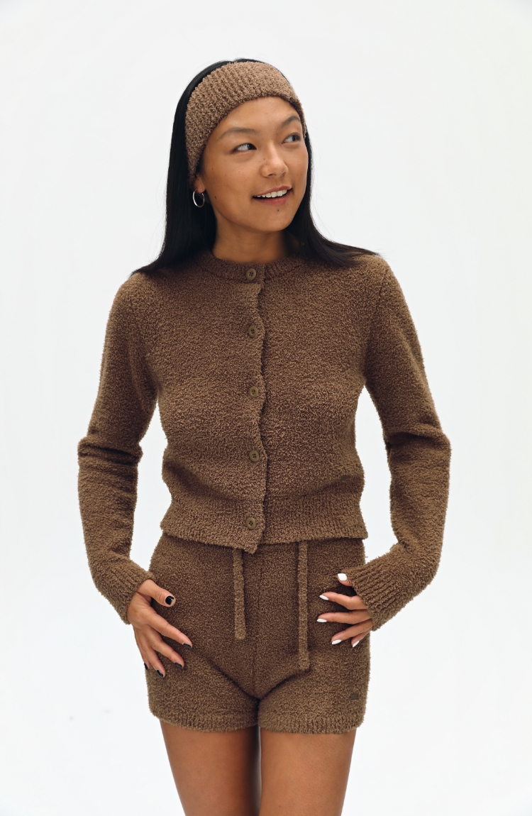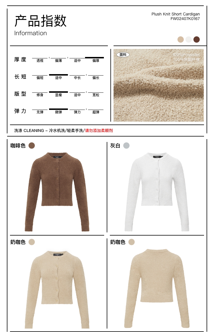 oneup毛绒针织短款开衫