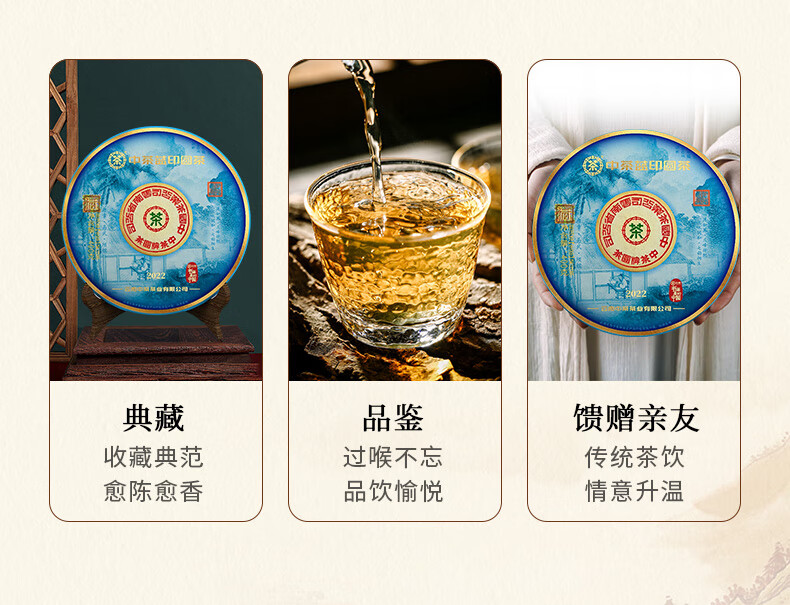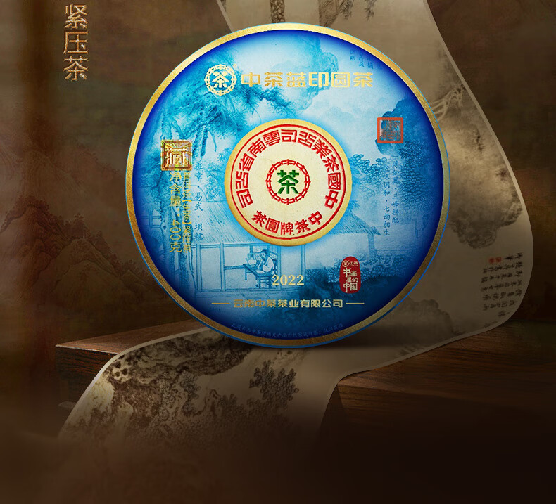 中粮-中茶2022年蓝印圆茶普洱生茶班章易武坝糯三峰拼配饼茶400g书话里的中国联名中粮茶叶 /云南干仓直发