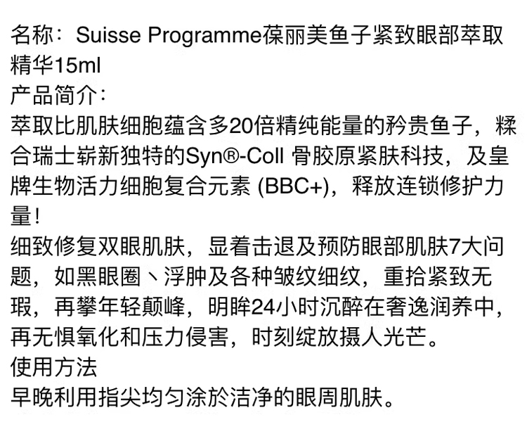 【商品名称】瑞士SUI 尊贵鱼子眼部紧致修护精华液15ml