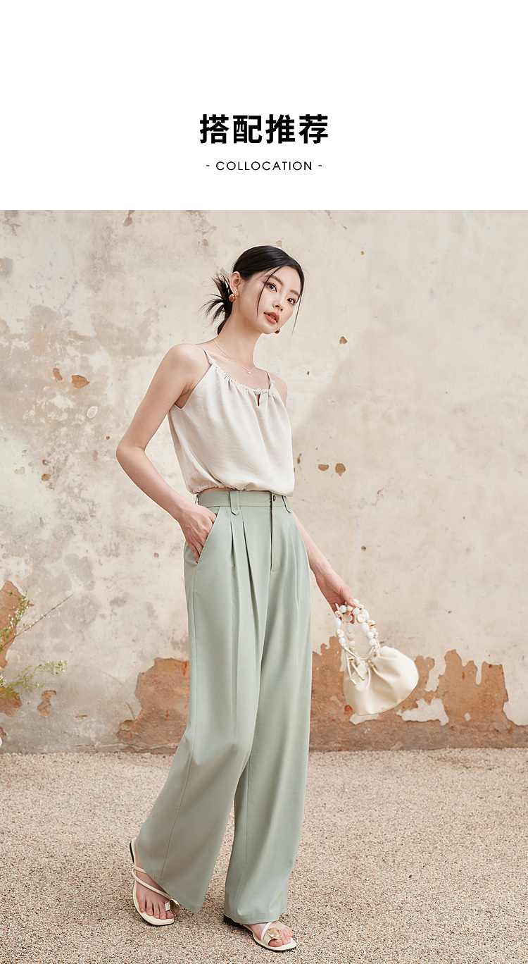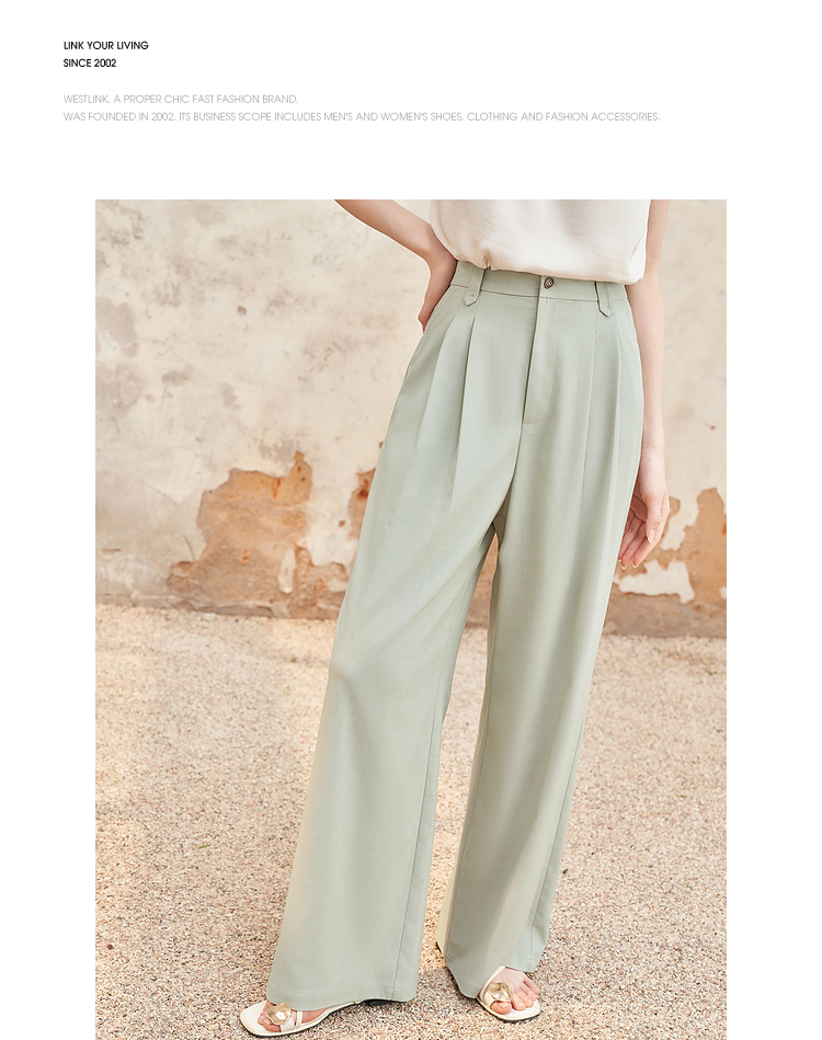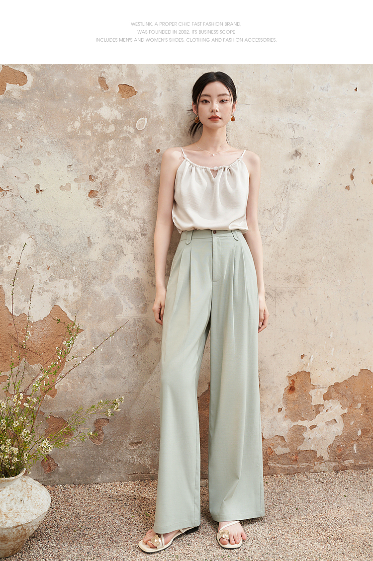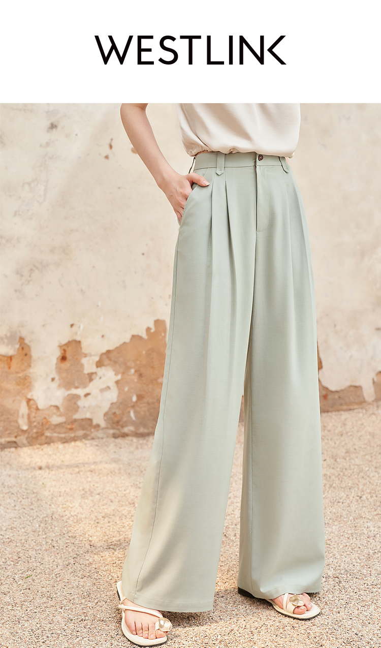 西遇宽松休闲通勤长裤女夏季新款阔腿显瘦百搭精致高腰休闲裤D1341115