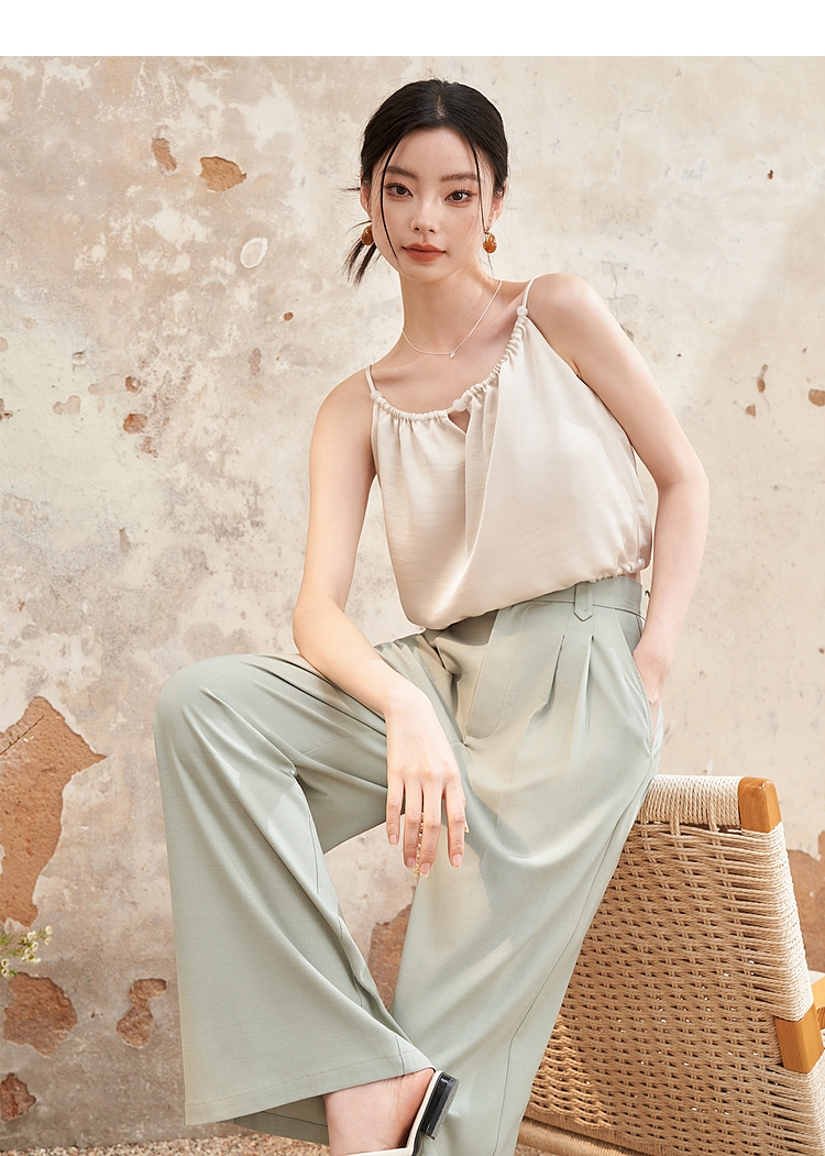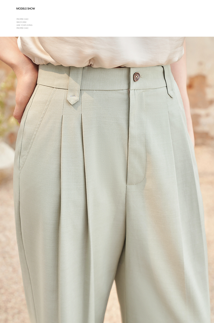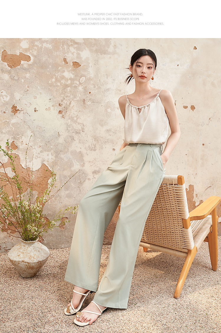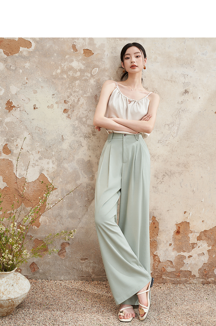 西遇宽松休闲通勤长裤女夏季新款阔腿显瘦百搭精致高腰休闲裤D1341115