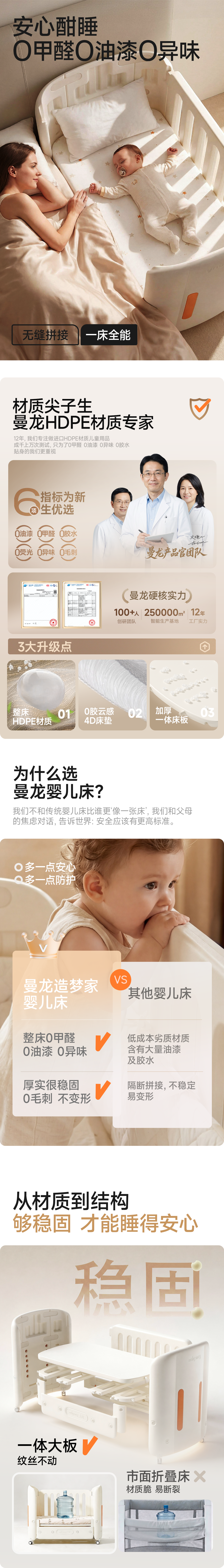 【春日趣玩FUN】曼龙mloong宝宝婴儿床可移动可拼接多功能护理台儿童床新生儿专用
