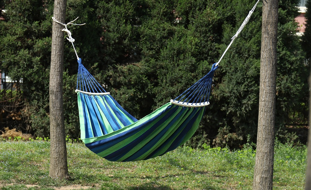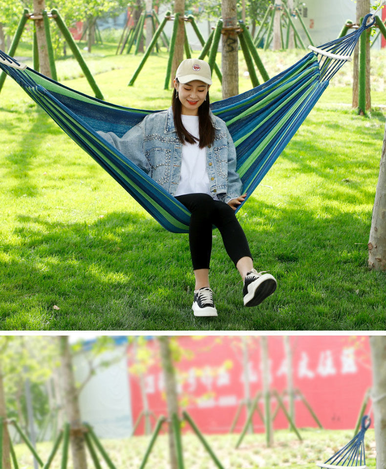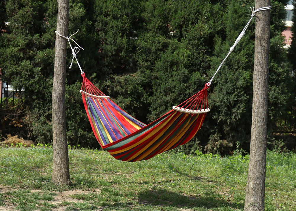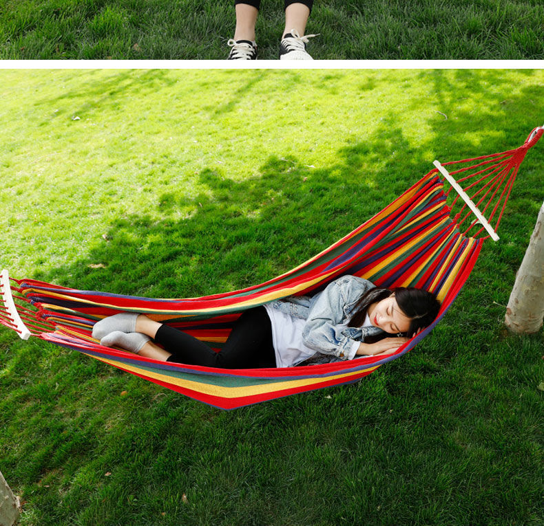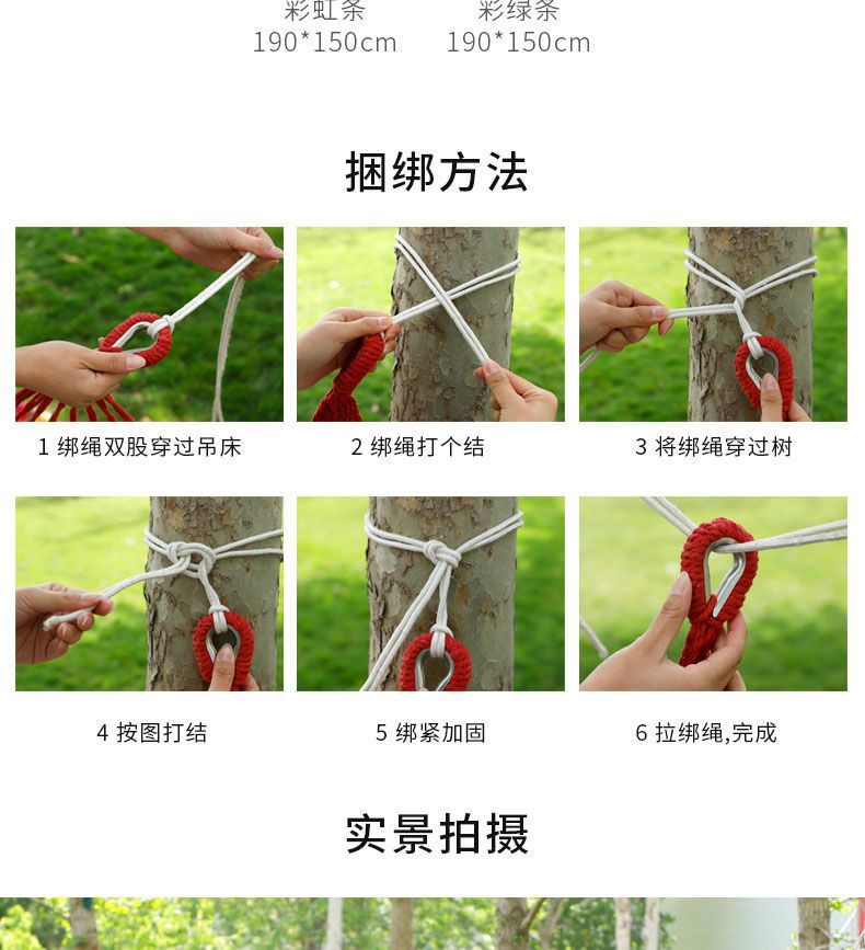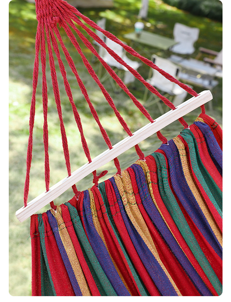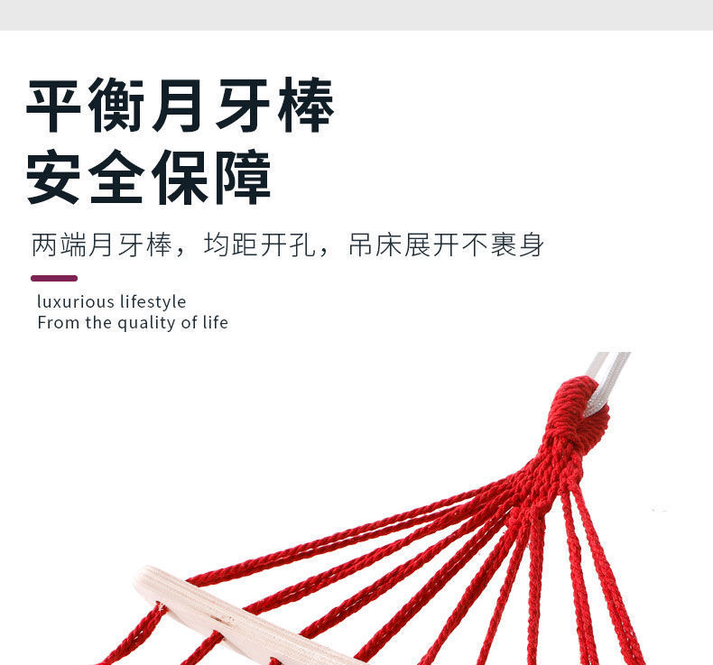 【送绑绳+收纳袋+鸭嘴扣】彩虹吊床,时空悠远,尽享舒适。彩条设计,耐磨材料,鸭嘴扣固定,多色选择,防侧翻安全保障,大人儿童皆适用。多功能实用性强,户外休闲享受!