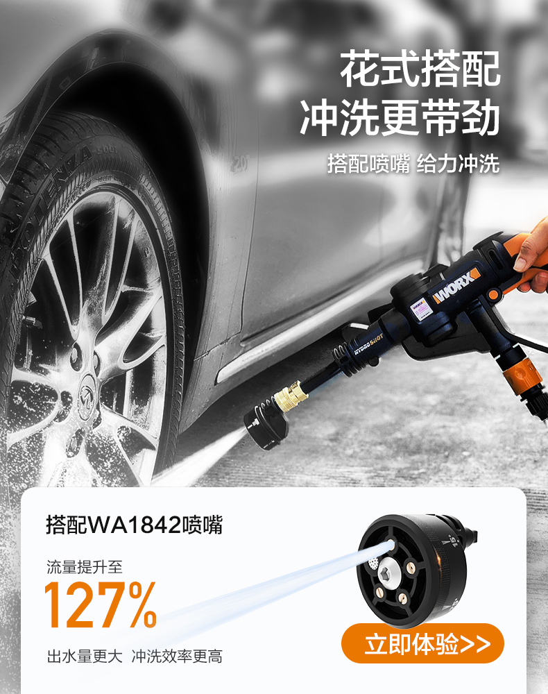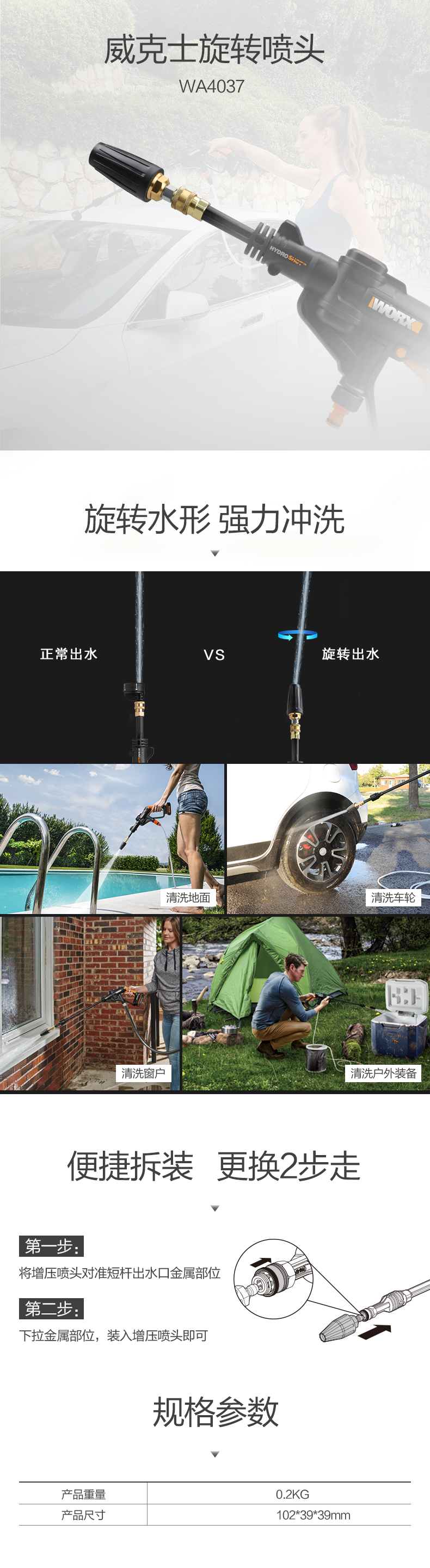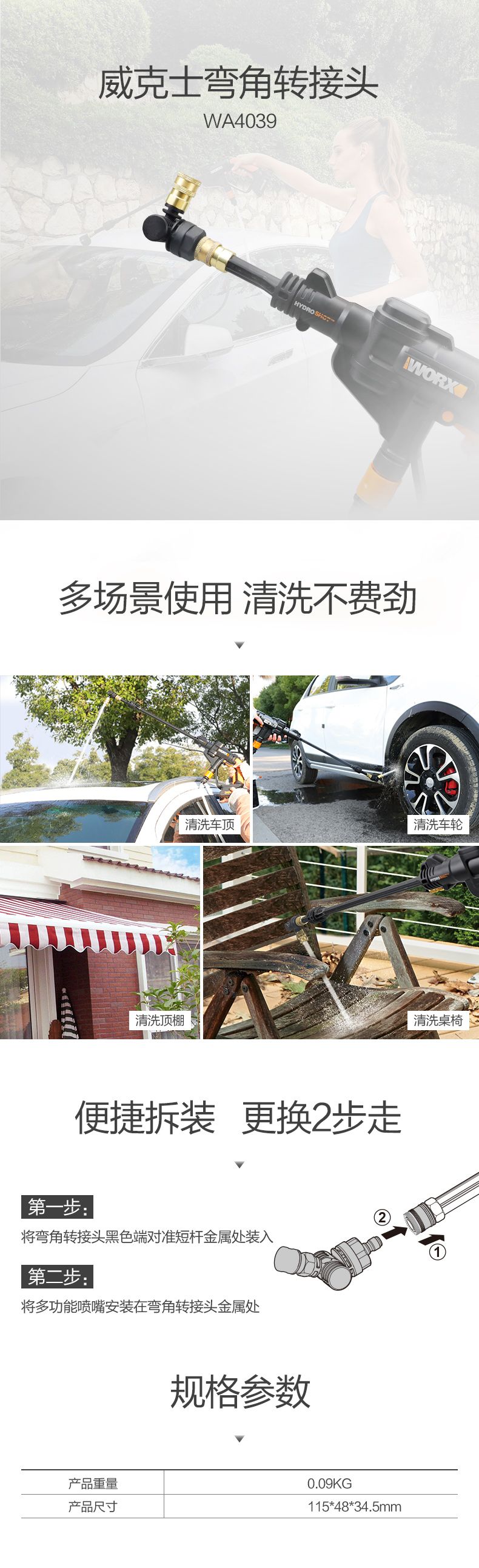 WORX威克士清洗机无线洗车机附件旋转喷头 弯角转接器 球刷擦窗器