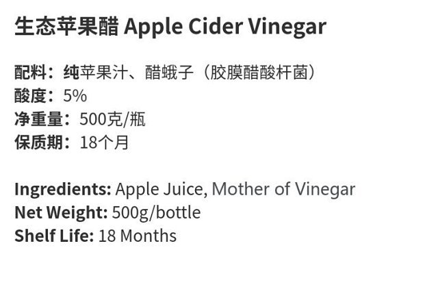 苹果醋未做其他添加勾兑,酸度较高,适合烹饪。
