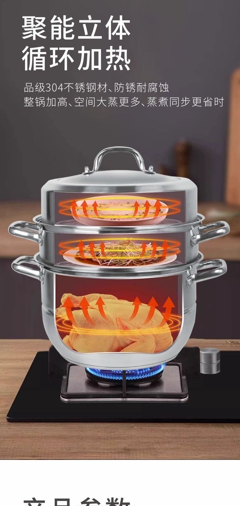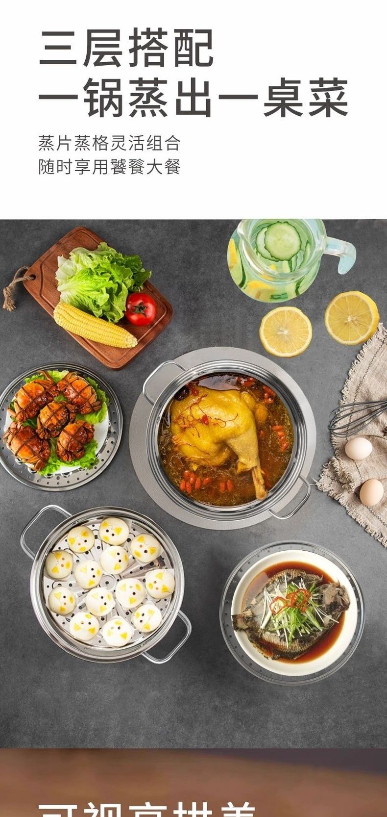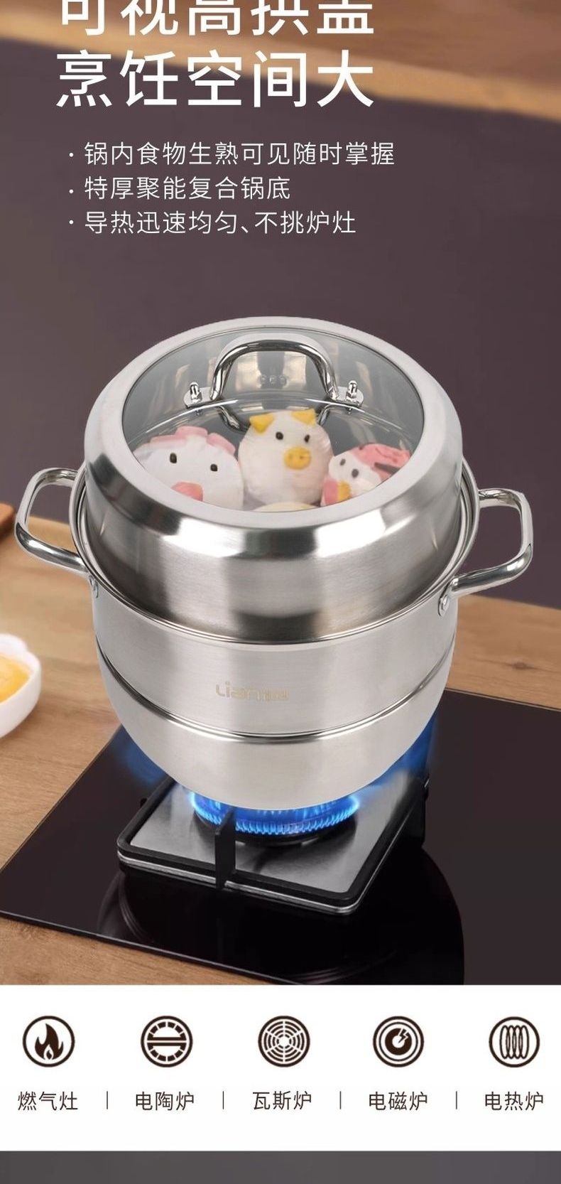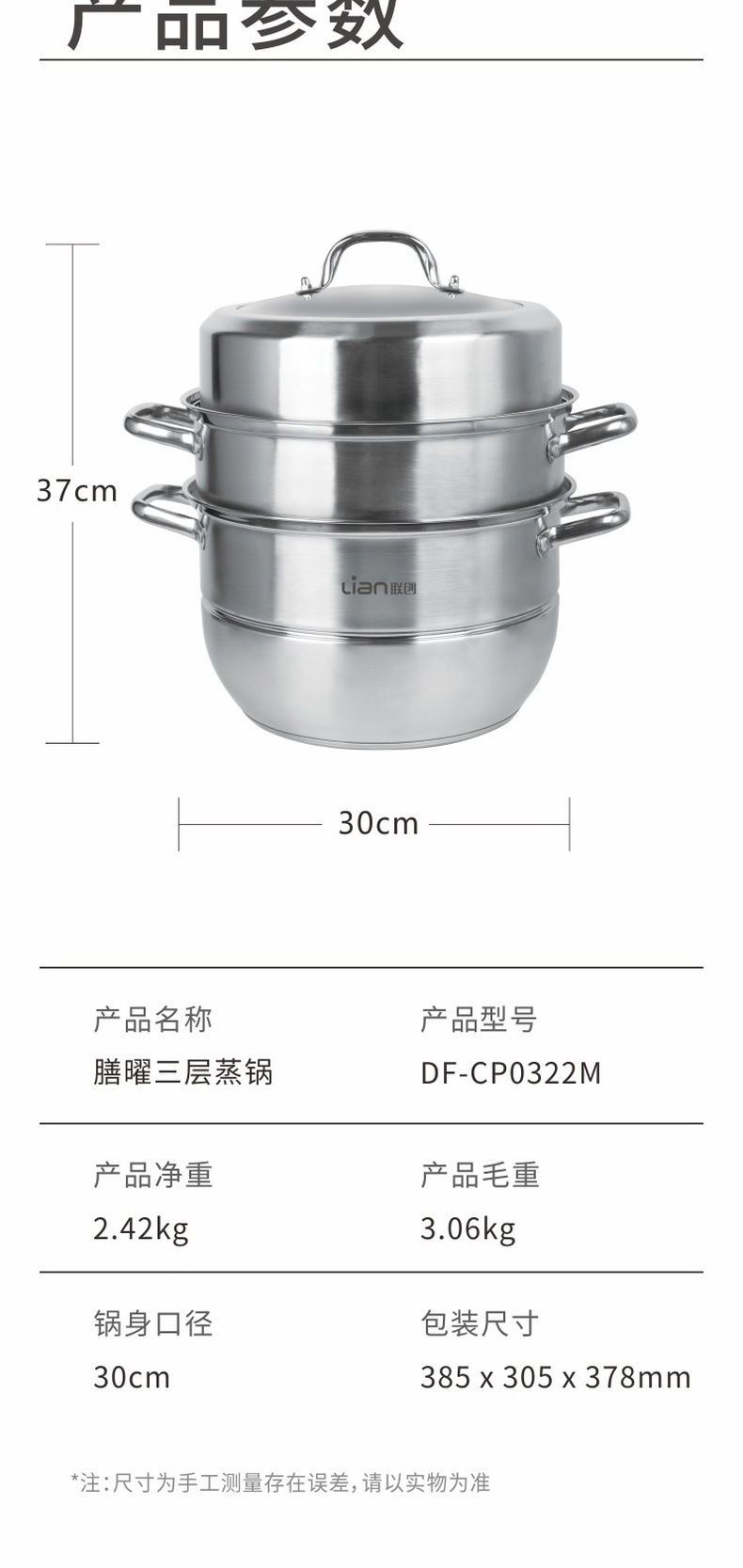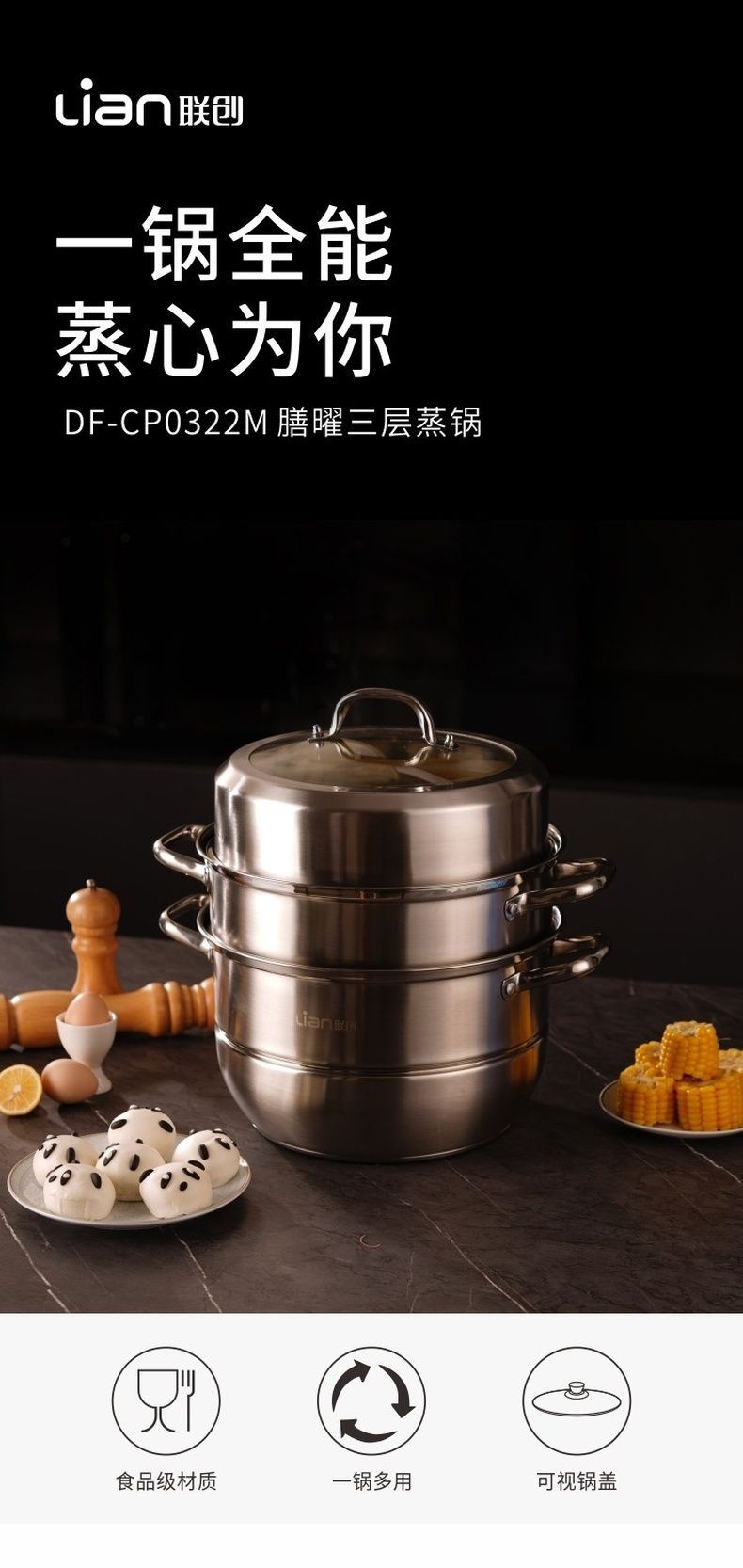 联创 膳曜三层蒸锅 DF-CP0322M 加厚不锈钢蒸锅大容量