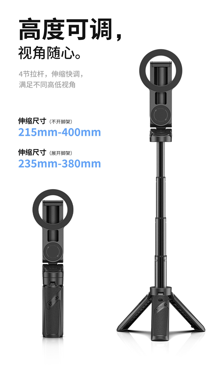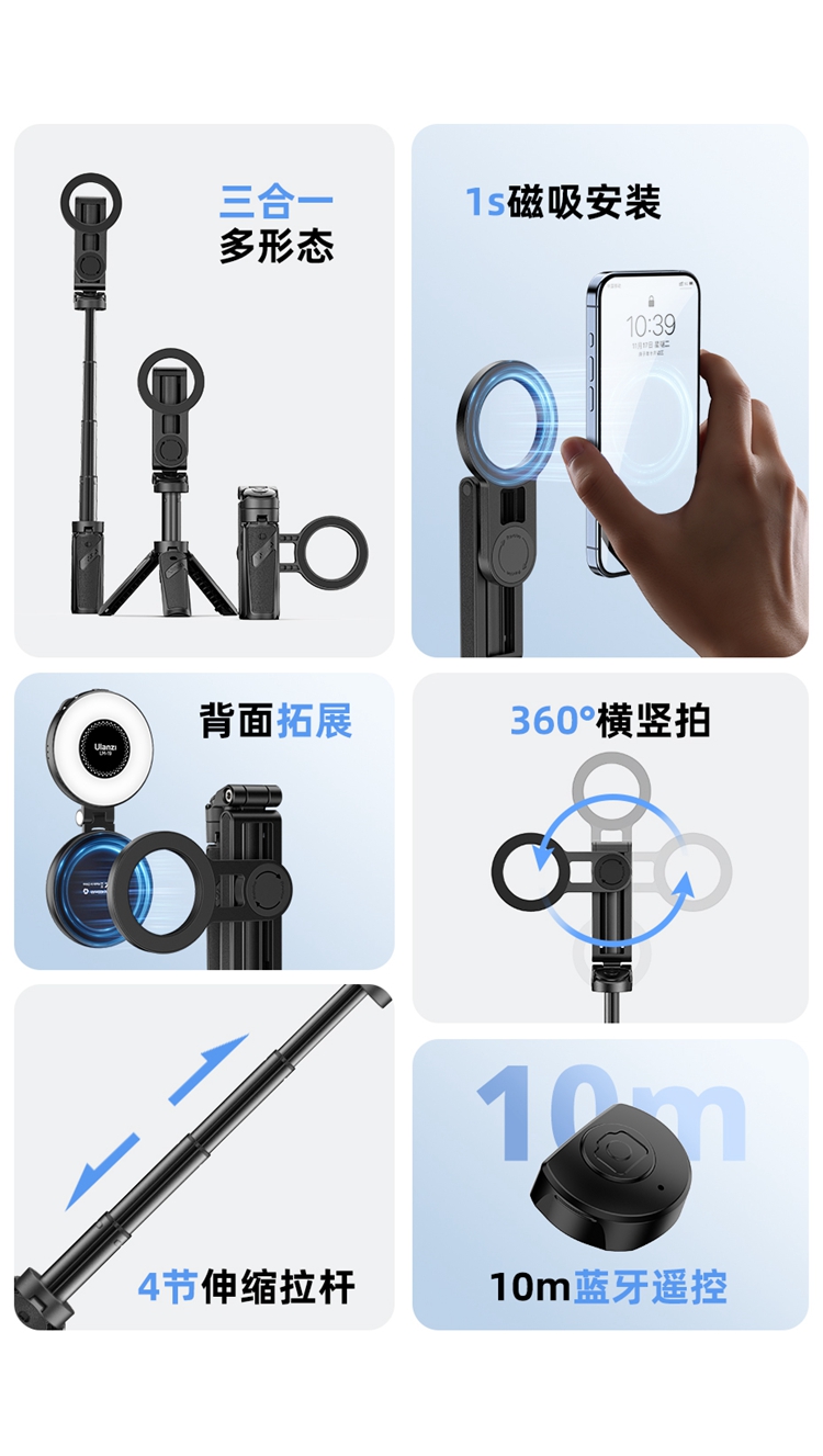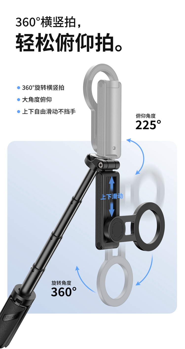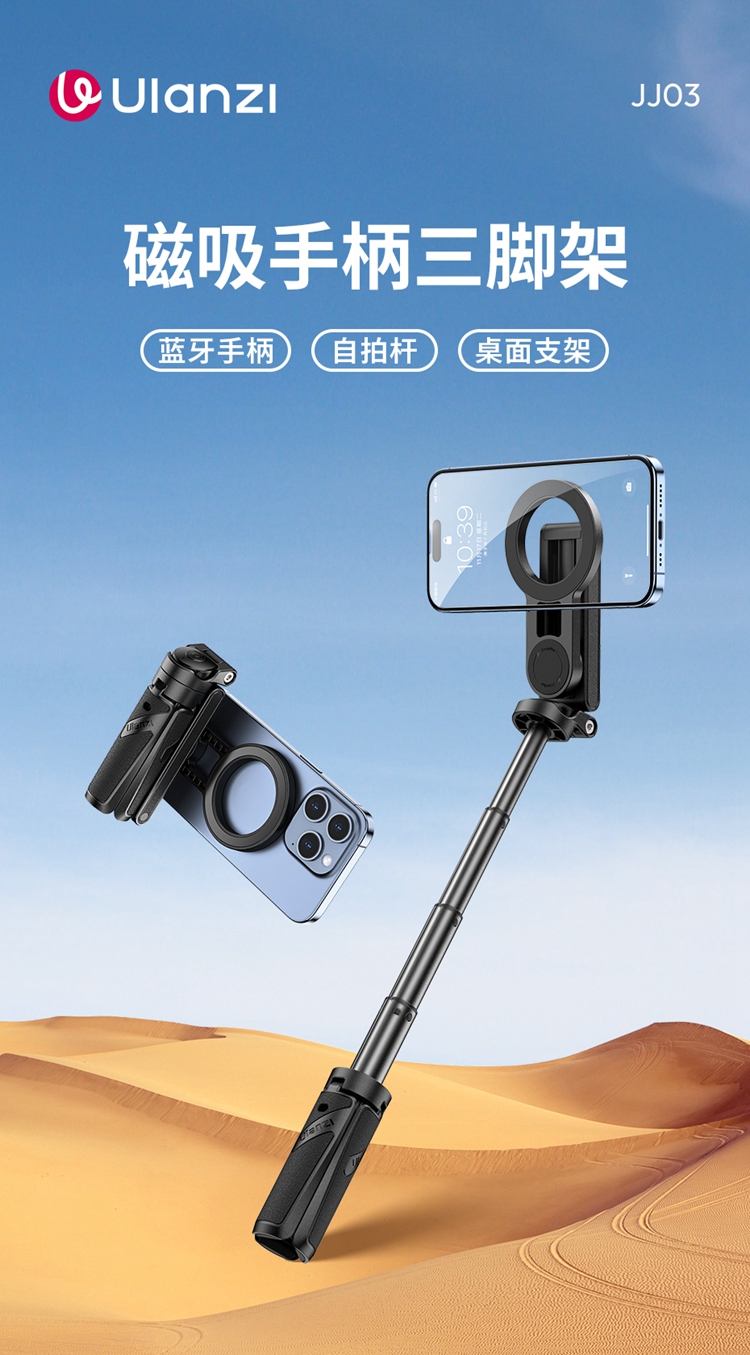 Ulanzi优篮子JJ03磁吸支架Magsafe自拍杆自拍神器三脚架拍摄直播旅游拍摄蓝牙遥控支架