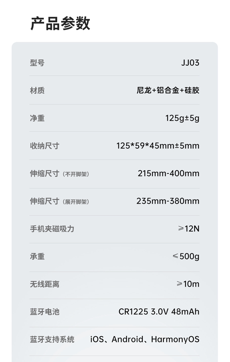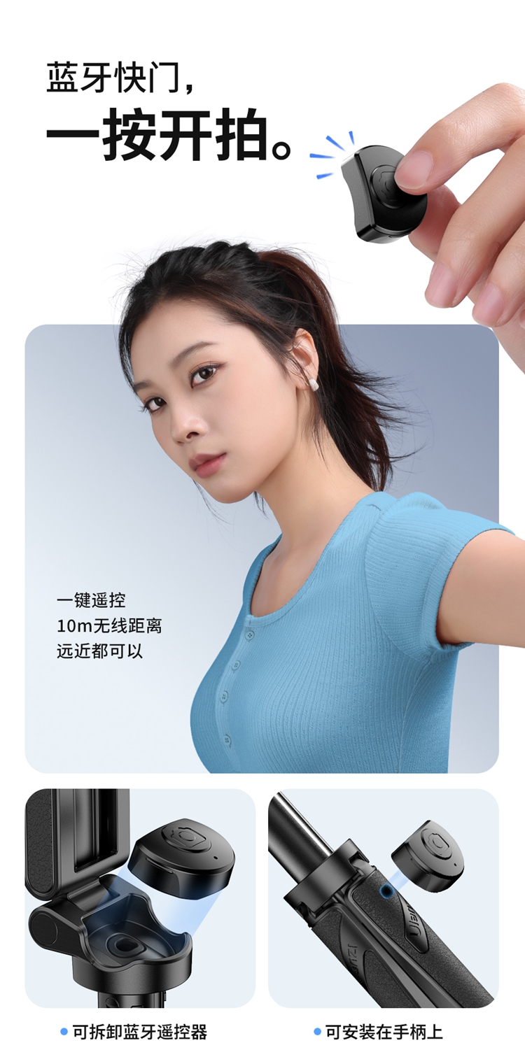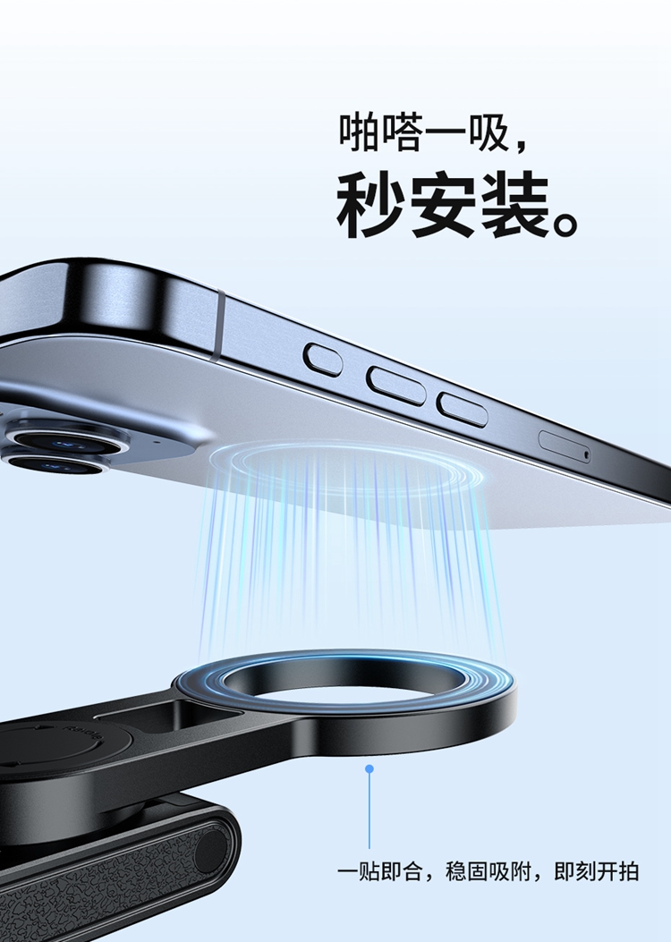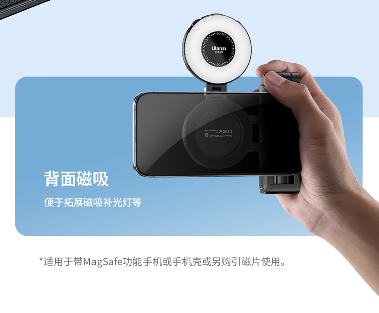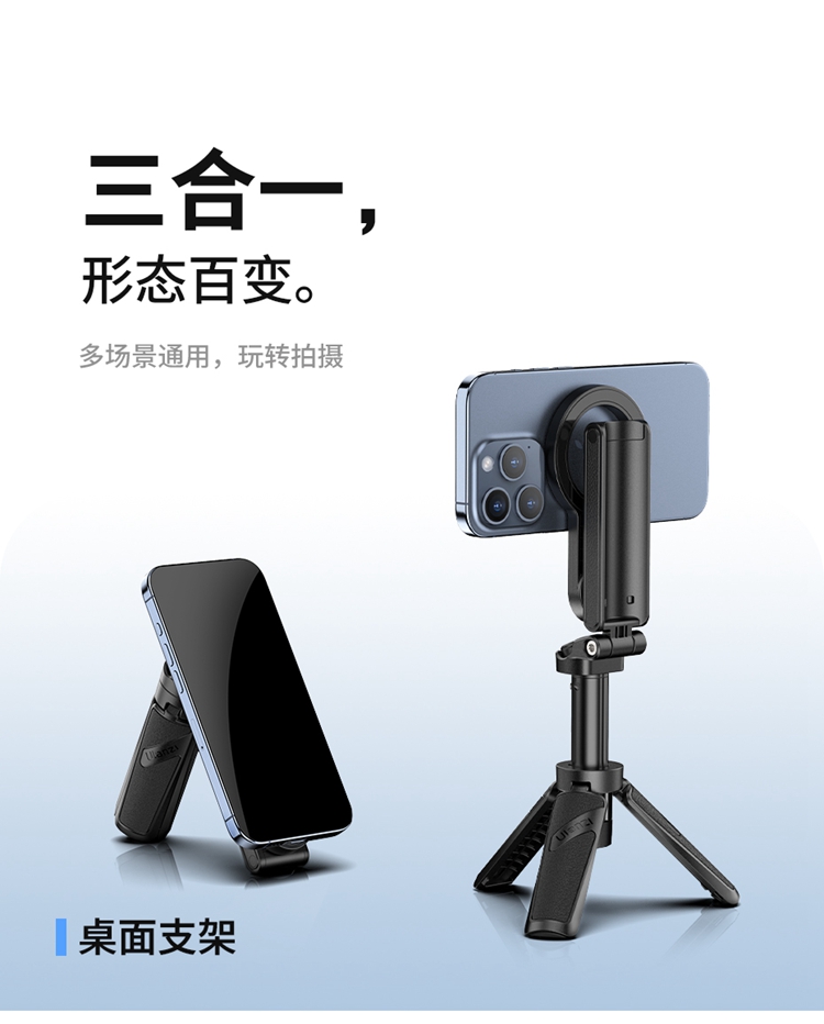 Ulanzi优篮子JJ03磁吸支架Magsafe自拍杆自拍神器三脚架拍摄直播旅游拍摄蓝牙遥控支架