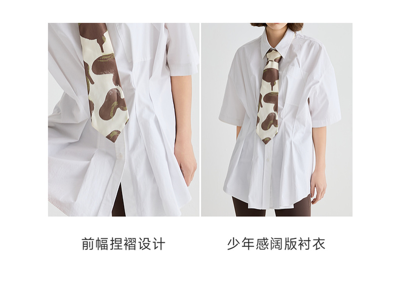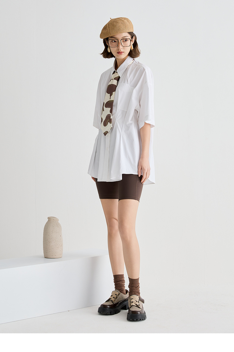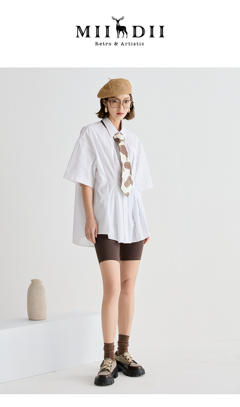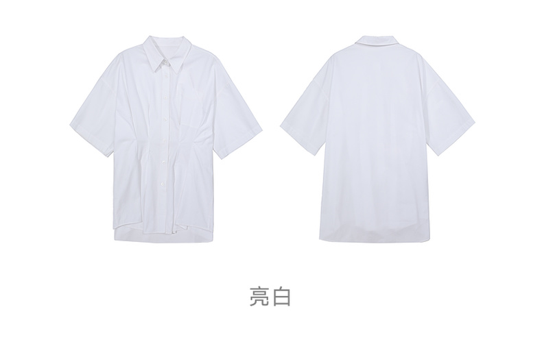 谜底衬衫短袖女2025夏季新品通勤立体捏褶大廓形H型衬衣252MC0545
